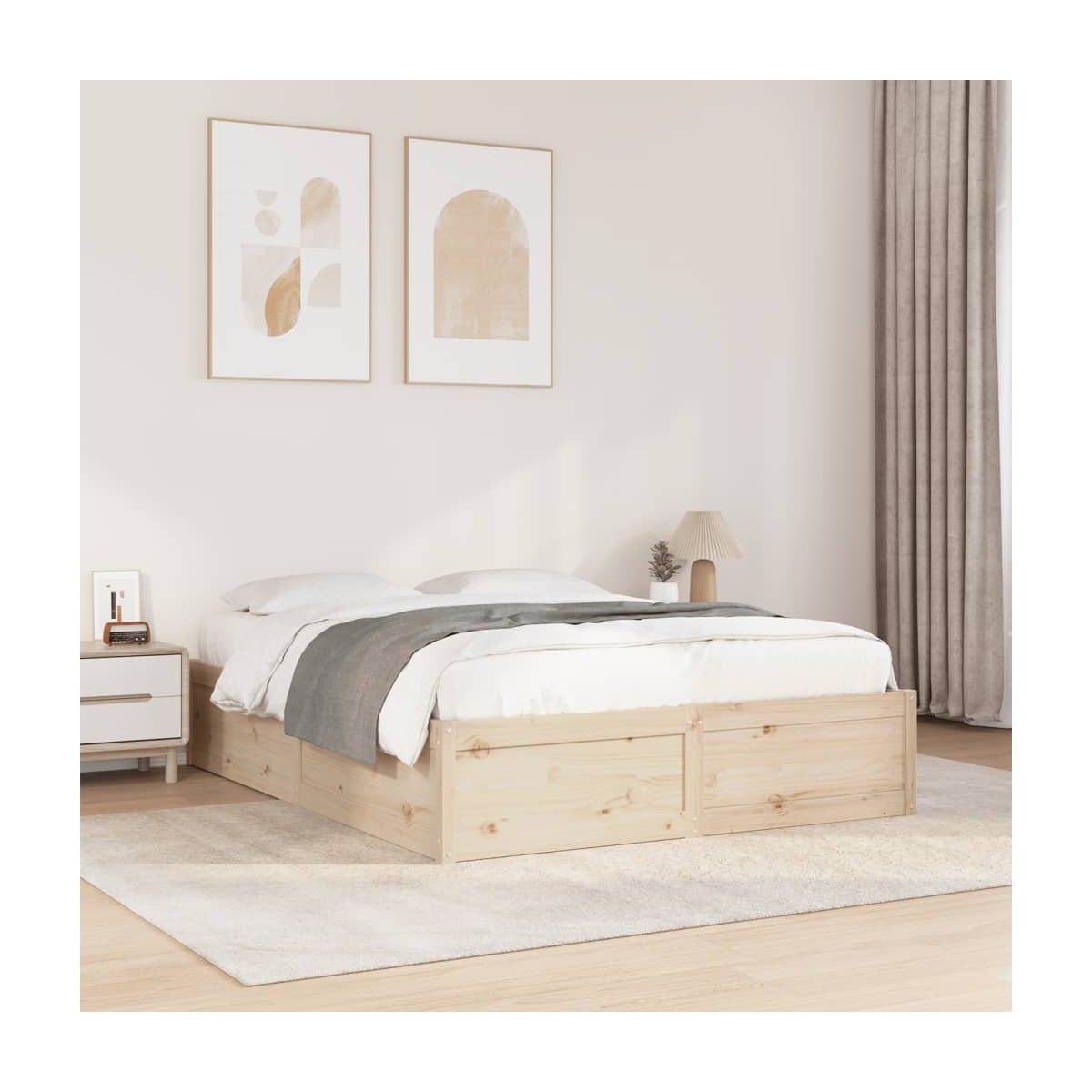 ¡Añade un toque moderno a tu dormitorio con esta estructura de cama! Es un aporte práctico y decorativo para tu hogar. Estructura estable y duradera: La madera de pino maciza es conocida por su resistencia y durabilidad. Sus vetas rectas y sus característicos nudos contribuyen a su encanto rústico.Listones robustos: Los listones de madera contrachapada proporcionan una buena distribución del peso, lo que garantiza que el colchón se mantenga en tu sitio con cada giro y vuelta del cuerpo mientras duermes.Diseño moderno: ¡Da un estilo moderno a tu casa! El moderno diseño posee líneas limpias, aspectos minimalistas y luz natural como parte del estilo de interiorismo. Información útil:El colchón no está incluido con la cama. Disponemos de una variada selección de colchones. Puedes echar un vistazo a nuestra tienda para buscar el colchón correspondiente.