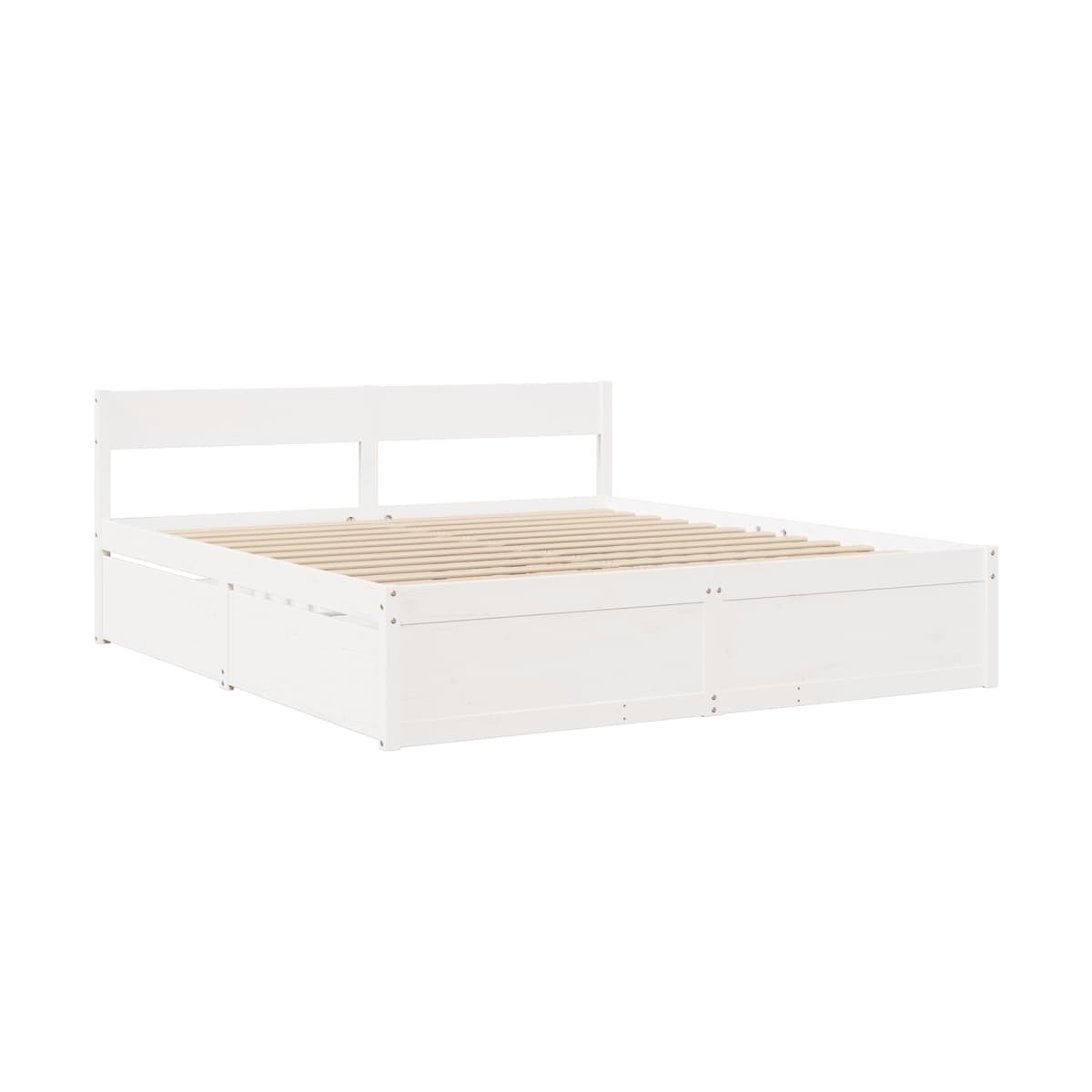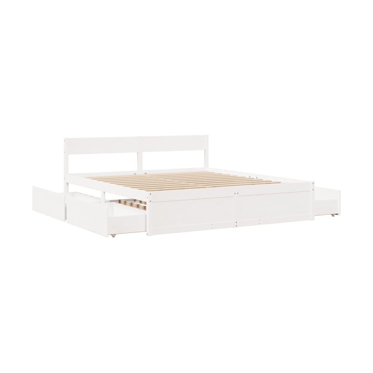 ¡Añade un toque moderno a tu dormitorio con esta estructura de cama con cajones! Es un aporte práctico y decorativo para tu hogar. Estructura estable y duradera: La madera de pino maciza es conocida por su resistencia y durabilidad. Sus vetas rectas y sus característicos nudos contribuyen a su encanto rústico.Listones robustos: Los listones de madera contrachapada proporcionan una buena distribución del peso, lo que garantiza que el colchón se mantenga en tu sitio con cada giro y vuelta del cuerpo mientras duermes.Función de almacenaje: Los cajones de cama incluidos proporcionan amplio espacio de almacenamiento para guardar cosas básicas, y mantienen la habitación limpia y ordenada.Cabecero versátil: Esta estructura de cama viene con un cabecero que proporciona un excelente soporte para la espalda cuando te sientas en la cama para leer o ver la televisión, a la vez que sirve como elemento decorativo. Información útil:El colchón no está incluido con la cama. Disponemos de una variada selección de colchones. Puedes echar un vistazo a nuestra tienda para buscar el colchón correspondiente.