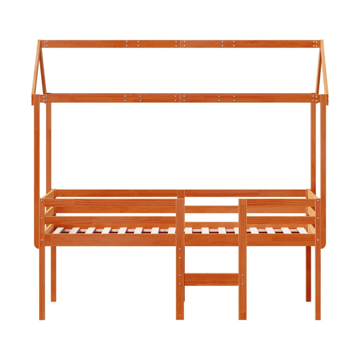 Esta cama alta, con la versatilidad en el corazón de su diseño, es una combinación perfecta de estilo elegante y moderno y practicidad. Es ideal para habitaciones pequeñas. Madera de pino maciza: La madera de pino maciza es un bonito material natural. La madera de pino tiene vetas rectas, y los nudos dan al material su distintivo aspecto rústico.Función práctica: La cama alta ofrece una gran manera de utilizar el espacio del suelo en el dormitorio de tu hijo, puedes combinarla con una cortina de juego genial, un colchón de juego y un panel de cobertizo como rincón de juego o utilizar el área de abajo para el almacenamiento. Los listones de madera contrachapada proporcionan un soporte adicional para la cama. Extiende la vida útil del colchón al absorber la mayor parte del estrés y el peso en la cama.Diseño seguro: La escalera incorporada en la cama alta facilita la subida y bajada de la cama, y las barandillas garantizan la seguridad de los más pequeños mientras duermen.Gran diversión: Al combinar el techo con la cama de tu hijo, puedes crear un escondite que le ofrezca a tu hijo mucha diversión a la hora de acostarse. Este innovador añadido al cuarto no solo será un punto emocionante, sino que también traerá asombro y emoción a la habitación de los niños.Puerta lateral abierta: El techo cuenta con una puerta lateral abierta, lo que facilita el acceso para que tus hijos entren y salgan de la cama. Información útil:El colchón no está incluido con la cama. Disponemos de una variada selección de colchones. Puedes echar un vistazo a nuestra tienda para buscar el colchón correspondiente.