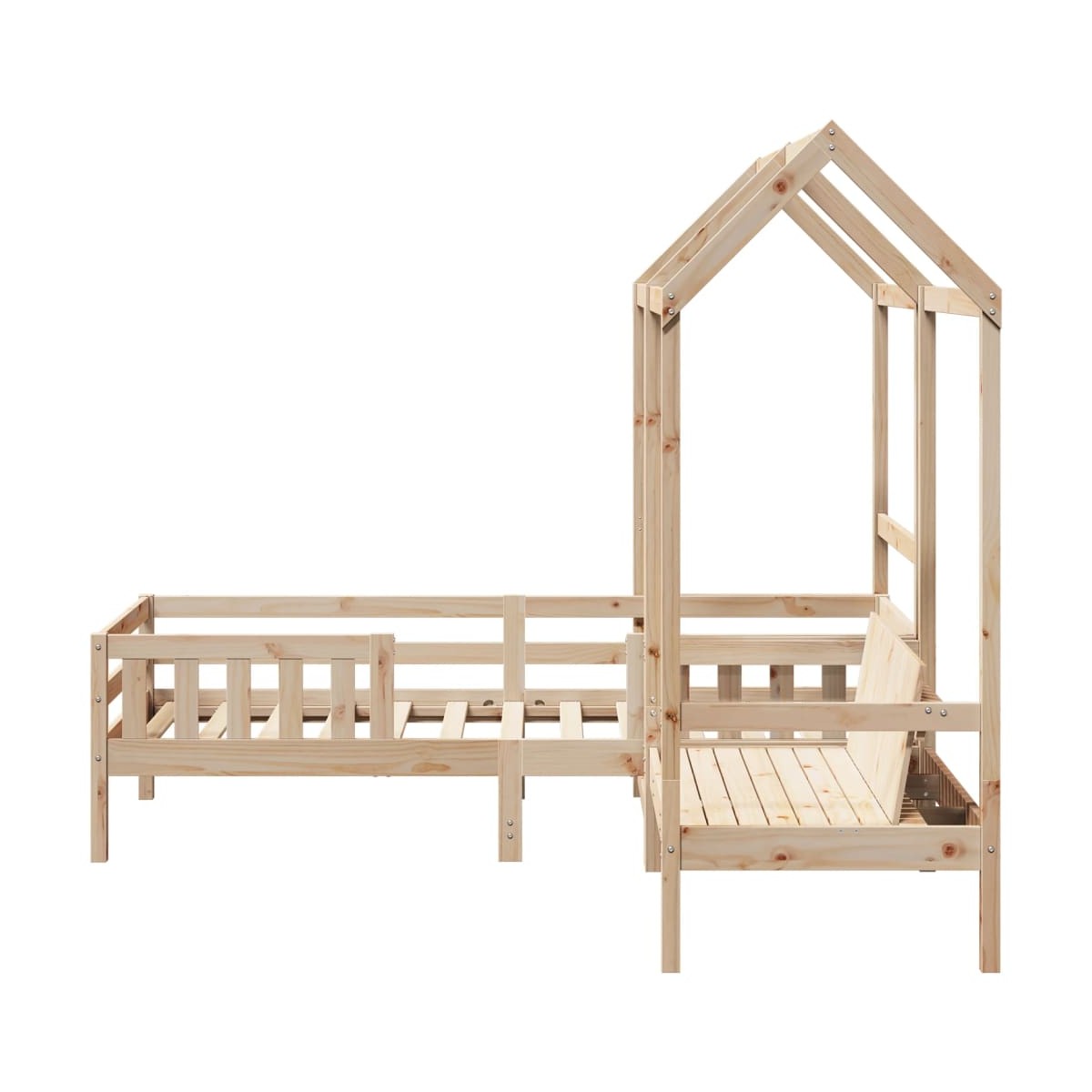 ¡Añade un toque moderno a tu dormitorio con este juego de cama y banco! Es un aporte práctico y decorativo para tu hogar. Madera de pino maciza: La madera de pino maciza es un bonito material natural. La madera de pino tiene vetas rectas, y los nudos dan al material su distintivo aspecto rústico.Listones robustos: Los listones de madera contrachapada proporcionan una buena distribución del peso, lo que garantiza que el colchón se mantenga en tu sitio con cada giro y vuelta del cuerpo mientras duermes.Práctico respaldo: El banco está diseñado con un respaldo para que puedas relajar tu cuerpo con más comodidad.Gran diversión: Al combinar el techo con la cama de tu hijo, puedes crear un escondite que le ofrezca a tu hijo mucha diversión a la hora de acostarse. Este innovador añadido al cuarto no solo será un punto emocionante, sino que también traerá asombro y emoción a la habitación de los niños.Diseño moderno: ¡Da un estilo moderno a tu casa! El moderno diseño posee líneas limpias, aspectos minimalistas y luz natural como parte del estilo de interiorismo. Información útil:El colchón no está incluido con la cama. Disponemos de una variada selección de colchones. Puedes echar un vistazo a nuestra tienda para buscar el colchón correspondiente.