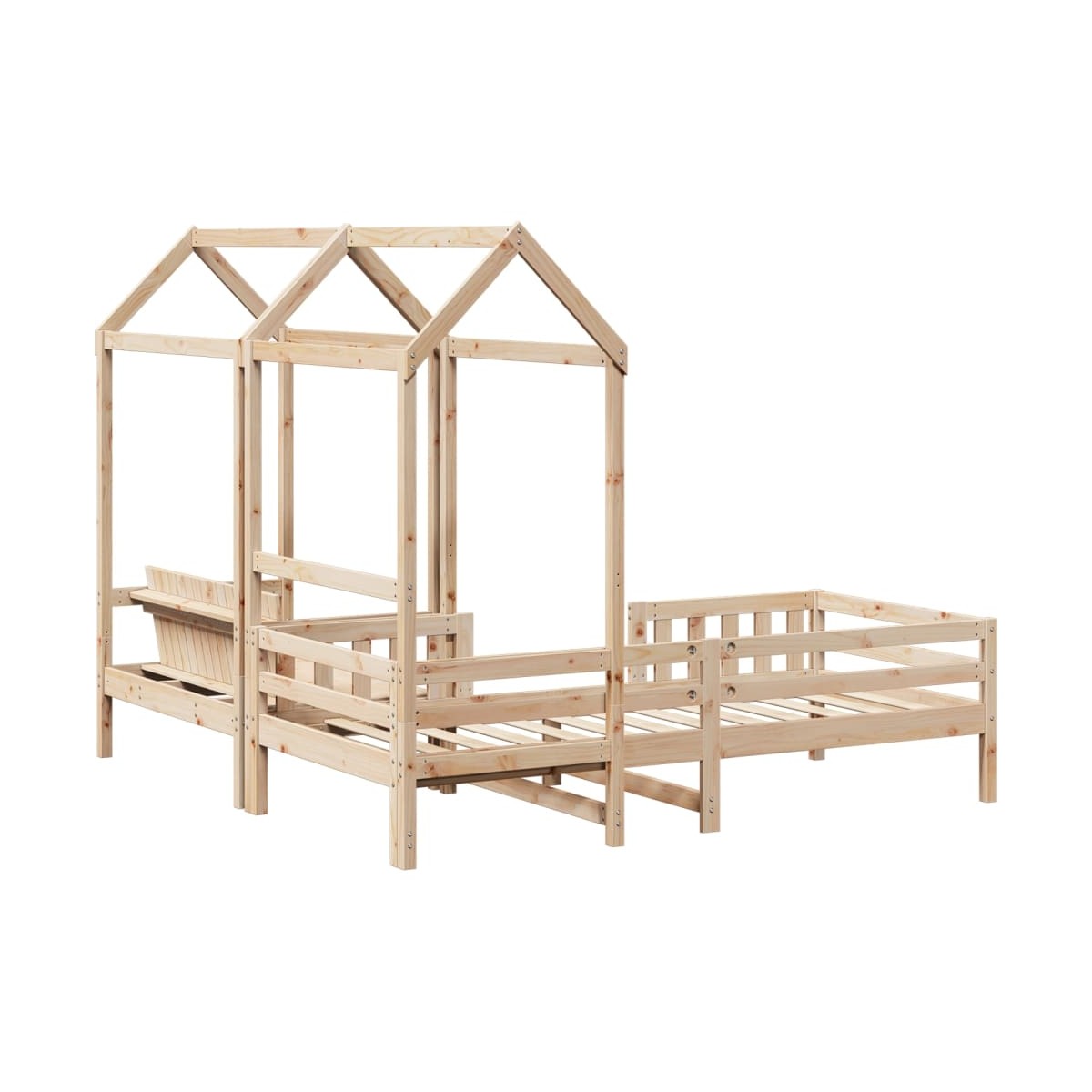 ¡Añade un toque moderno a tu dormitorio con este juego de cama y banco! Es un aporte práctico y decorativo para tu hogar. Madera de pino maciza: La madera de pino maciza es un bonito material natural. La madera de pino tiene vetas rectas, y los nudos dan al material su distintivo aspecto rústico.Listones robustos: Los listones de madera contrachapada proporcionan una buena distribución del peso, lo que garantiza que el colchón se mantenga en tu sitio con cada giro y vuelta del cuerpo mientras duermes.Práctico respaldo: El banco está diseñado con un respaldo para que puedas relajar tu cuerpo con más comodidad.Gran diversión: Al combinar el techo con la cama de tu hijo, puedes crear un escondite que le ofrezca a tu hijo mucha diversión a la hora de acostarse. Este innovador añadido al cuarto no solo será un punto emocionante, sino que también traerá asombro y emoción a la habitación de los niños.Diseño moderno: ¡Da un estilo moderno a tu casa! El moderno diseño posee líneas limpias, aspectos minimalistas y luz natural como parte del estilo de interiorismo. Información útil:El colchón no está incluido con la cama. Disponemos de una variada selección de colchones. Puedes echar un vistazo a nuestra tienda para buscar el colchón correspondiente.