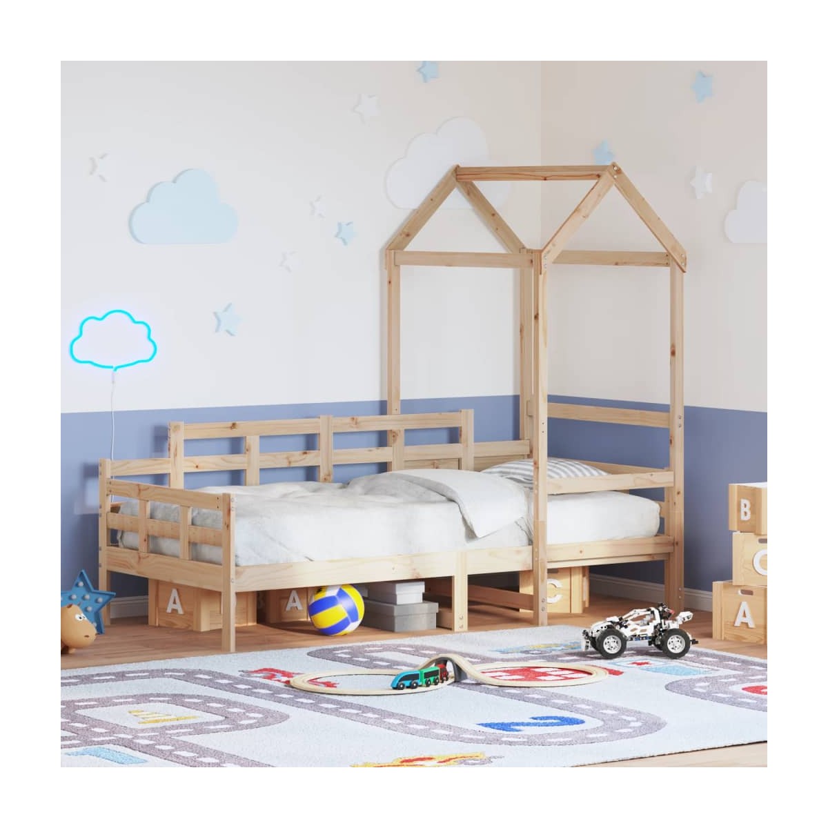 Este versátil sofá cama de madera se puede usar como cama en el dormitorio y también encaja a la perfección como sofá en el salón. Se adapta perfectamente a tus diferentes necesidades, lo que te proporciona mucho espacio para dormir y descansar. Madera de pino maciza: La madera de pino maciza es un bonito material natural. La madera de pino tiene vetas rectas, y los nudos dan al material su distintivo aspecto rústico.Barras de cama de 3 lados: Esta cama tiene un diseño único en el lateral de la cama, que proporciona una sensación de seguridad y además añade un toque de estilo sofisticado a tu hogar.Diseño de listones: El somier de madera proporciona una mejor circulación del aire para mantener el colchón fresco durante más tiempo, además de mejorar la capacidad de carga de la cama y de asegurar su estabilidad.Espacio de almacenamiento adicional: Aprovecha al máximo el espacio que hay debajo de la cama para guardar varios objetos. Ideal para guardar cajas para organizar tu ropa, juguetes o edredones.Gran diversión: Al combinar el techo con tu sofá cama, puedes crear un escondite que le ofrezca a tu hijo mucha diversión a la hora de acostarse. Este innovador añadido al cuarto no solo será un punto emocionante, sino que también traerá asombro y emoción a la habitación.Puerta lateral abierta: El techo cuenta con una puerta lateral abierta, lo que facilita el acceso para que tus hijos entren y salgan de la cama. Información útil:El colchón no está incluido con la cama. Disponemos de una variada selección de colchones. Puedes echar un vistazo a nuestra tienda para buscar el colchón correspondiente.