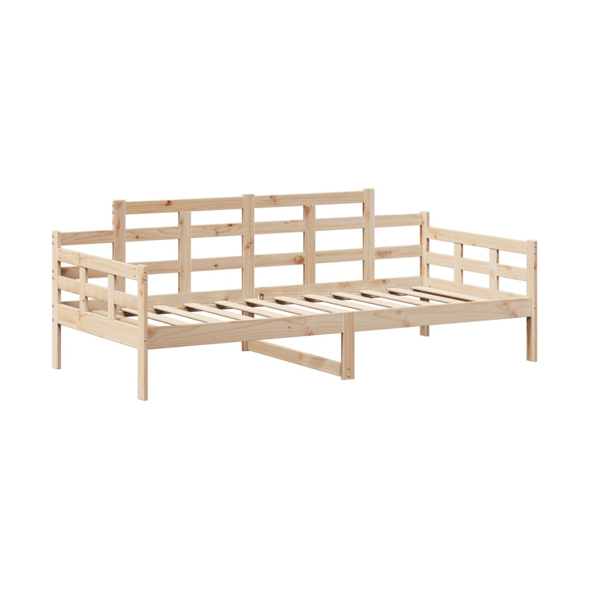 Este versátil sofá cama de madera se puede usar como cama en el dormitorio y también encaja a la perfección como sofá en el salón. Se adapta perfectamente a tus diferentes necesidades, lo que te proporciona mucho espacio para dormir y descansar. Madera de pino maciza: La madera de pino maciza es un bonito material natural. La madera de pino tiene vetas rectas, y los nudos dan al material su distintivo aspecto rústico.Barras de cama de 3 lados: Esta cama tiene un diseño único en el lateral de la cama, que proporciona una sensación de seguridad y además añade un toque de estilo sofisticado a tu hogar.Diseño de listones: El somier de madera proporciona una mejor circulación del aire para mantener el colchón fresco durante más tiempo, además de mejorar la capacidad de carga de la cama y de asegurar su estabilidad.Espacio de almacenamiento adicional: Aprovecha al máximo el espacio que hay debajo de la cama para guardar varios objetos. Ideal para guardar cajas para organizar tu ropa, juguetes o edredones.Gran diversión: Al combinar el techo con tu sofá cama, puedes crear un escondite que le ofrezca a tu hijo mucha diversión a la hora de acostarse. Este innovador añadido al cuarto no solo será un punto emocionante, sino que también traerá asombro y emoción a la habitación.Puerta lateral abierta: El techo cuenta con una puerta lateral abierta, lo que facilita el acceso para que tus hijos entren y salgan de la cama. Información útil:El colchón no está incluido con la cama. Disponemos de una variada selección de colchones. Puedes echar un vistazo a nuestra tienda para buscar el colchón correspondiente.
