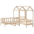 Este versátil juego de sofá cama y banco de madera se puede utilizar como juego de cama en el dormitorio y también es ideal como juego de sofá en la sala de estar. Se adapta perfectamente a tus diferentes necesidades, lo que te proporciona mucho espacio para dormir y descansar. Madera de pino maciza: La madera de pino maciza es un bonito material natural. La madera de pino tiene vetas rectas, y los nudos dan al material su distintivo aspecto rústico.Barras de cama de 3 lados: Esta cama tiene un diseño único en el lateral de la cama, que proporciona una sensación de seguridad y además añade un toque de estilo sofisticado a tu hogar.Diseño de listones: El somier de madera proporciona una mejor circulación del aire para mantener el colchón fresco durante más tiempo, además de mejorar la capacidad de carga de la cama y de asegurar su estabilidad.Espacio de almacenamiento adicional: Aprovecha al máximo el espacio que hay debajo de la cama para guardar varios objetos. Ideal para guardar cajas para organizar tu ropa, juguetes o edredones.Práctico respaldo: El banco está diseñado con un respaldo para que puedas relajar tu cuerpo con más comodidad. Información útil:El colchón no está incluido con la cama. Disponemos de una variada selección de colchones. Puedes echar un vistazo a nuestra tienda para buscar el colchón correspondiente.