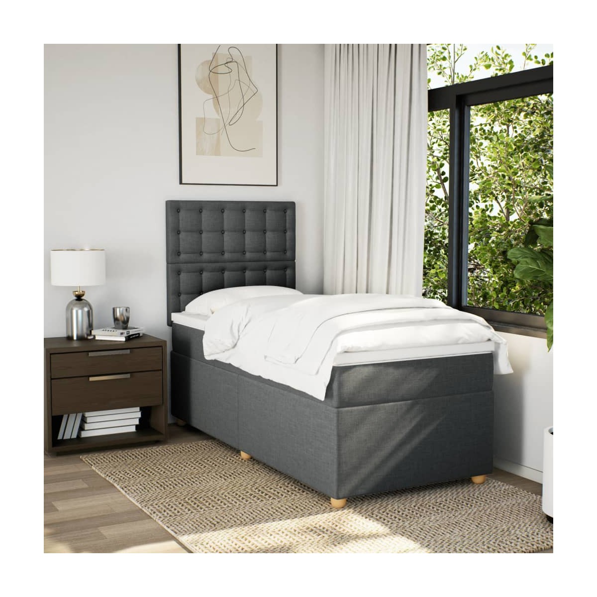 Utiliza esta cama de muelles para disfrutar de un sueño reparador. Te ofrece la máxima relajación y un sueño placentero. Material suave y duradero: El tejido de poliéster combina suavidad, transpirabilidad y durabilidad, lo que garantiza que experimentes la máxima comodidad.Colchón de muelles ensacados: Este colchón de muelles ensacados cuenta con muelles ensacados individuales que funcionan de forma independiente para proporcionar un apoyo personalizado reaccionando únicamente a la presión de cada zona. Este diseño evita que se enrolle y reduce la transferencia de movimiento en comparación con los colchones tradicionales de bobina abierta. Cada muelle ensacado sostiene el cuerpo individualmente.Cabecero regulable en altura: El cabecero es ajustable en altura para adaptarse a tus preferencias.Cubrecolchón cómodo: Este cubrecolchón mejora el soporte y la comodidad con su superficie suave y transpirable al tiempo que prolonga la vida útil de su colchón. Su funda extraíble permite un fácil lavado, lo que facilita el mantenimiento.Listones para un soporte óptimo: El somier se completa con listones para ofrecer un soporte esencial y transpirabilidad a tu colchón. Información útil:Por razones de higiene, el colchón no puede devolverse si se ha quitado o abierto el embalaje.