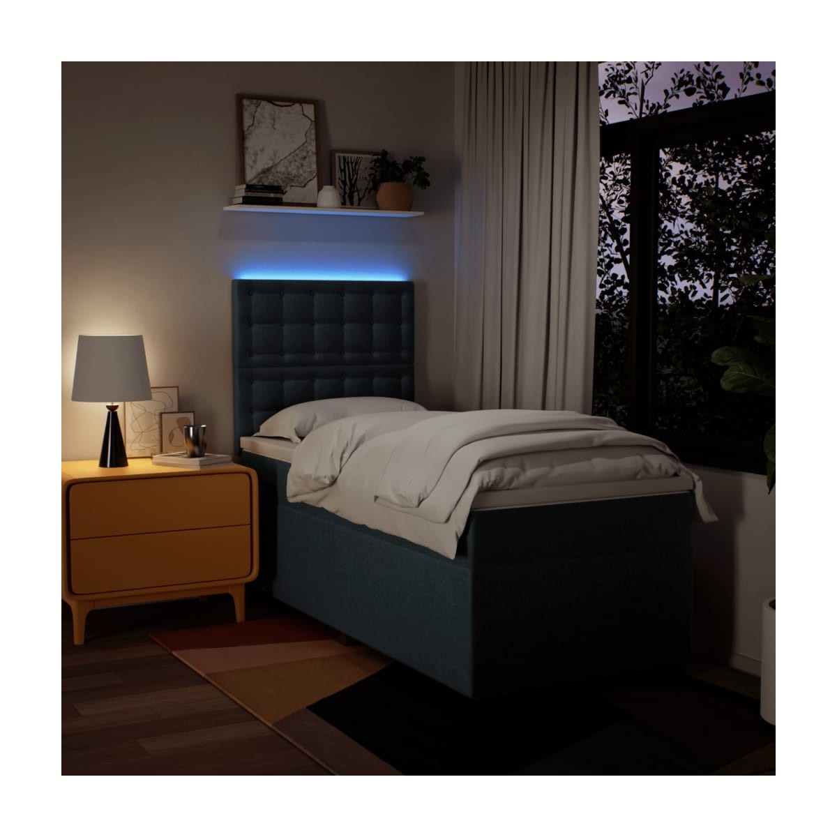 Utiliza esta cama de muelles para disfrutar de un sueño reparador. Te ofrece la máxima relajación y un sueño placentero. Material suave y duradero: El tejido de poliéster combina suavidad, transpirabilidad y durabilidad, lo que garantiza que experimentes la máxima comodidad.Colchón de muelles ensacados: Este colchón de muelles ensacados cuenta con muelles ensacados individuales que funcionan de forma independiente para proporcionar un apoyo personalizado reaccionando únicamente a la presión de cada zona. Este diseño evita que se enrolle y reduce la transferencia de movimiento en comparación con los colchones tradicionales de bobina abierta. Cada muelle ensacado sostiene el cuerpo individualmente.Luces LED para un ambiente agradable: Esta cama cuenta con luces LED que se pueden ajustar fácilmente para crear un espectáculo de luces personalizado. Puedes personalizar los modos, los colores y el brillo para mejorar el ambiente de tu espacio interior.Cabecero regulable en altura: El cabecero es ajustable en altura para adaptarse a tus preferencias.Cubrecolchón cómodo: Este cubrecolchón mejora el soporte y la comodidad con su superficie suave y transpirable al tiempo que prolonga la vida útil de su colchón. Su funda extraíble permite un fácil lavado, lo que facilita el mantenimiento.Información útil:El producto tiene un conector USB que necesita una fuente de alimentación USB certificada de 5 V (no incluida).Por razones de higiene, el colchón no puede devolverse si se ha quitado o abierto el embalaje.Únicamente puedes cortar por la parte con el símbolo de las tijeras y únicamente la parte con el USB seguirá funcionando como antes.