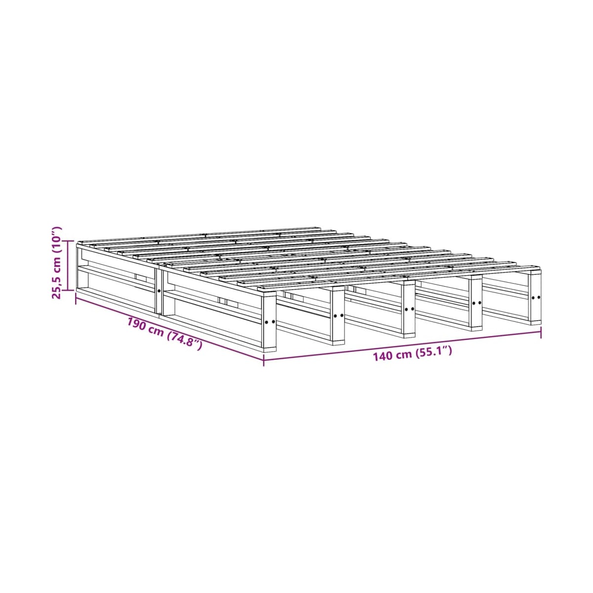 - Dimensiones totales: 190 x 140 x 25,5 cm (largo x ancho x alto)
