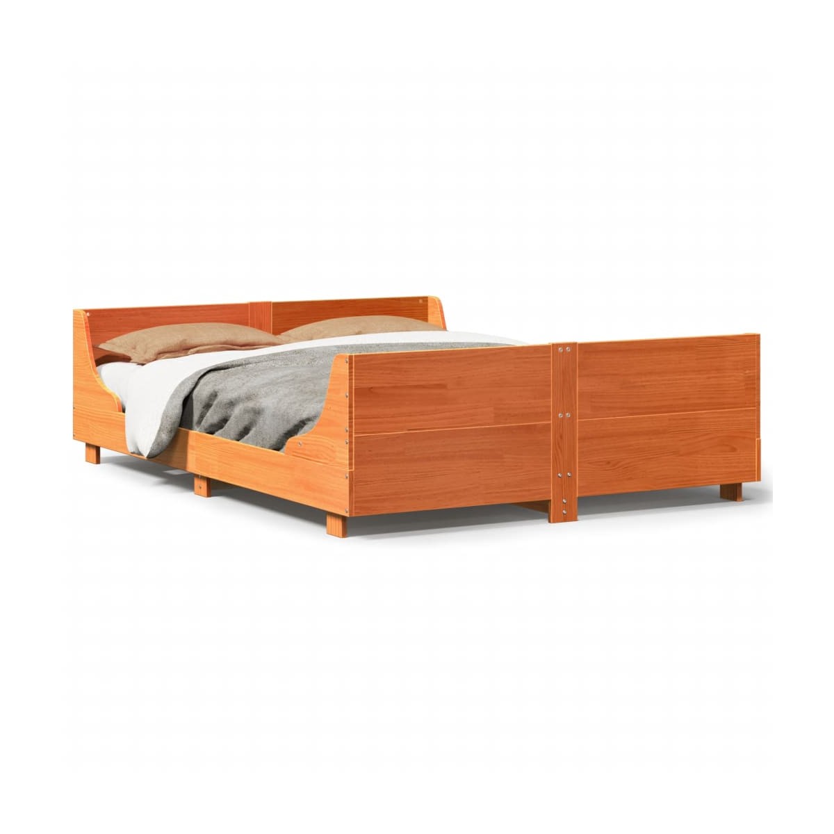 ¡Disfruta de una buena noche de sueño en esta estructura de cama de madera! Es un aporte práctico y decorativo para la casa. Madera de pino maciza: La madera de pino maciza es un bonito material natural. La madera de pino tiene vetas rectas, y los nudos dan al material su distintivo aspecto rústico.Listones de madera contrachapada: Los listones de madera contrachapada ofrecen una buena distribución del peso, lo que garantiza el tan necesario soporte y la transpirabilidad del colchón.Cabecero y estribo de cama útiles: El cabecero y el estribo de la cama de madera mantienen el colchón en su lugar. Además, la cabecera te brinda un excelente soporte para la espalda mientras estás sentado leyendo o mirando la televisión. Información útil: El colchón no está incluido con la cama. Disponemos de una variada selección de colchones. Puedes echar un vistazo a nuestra tienda para buscar el colchón correspondiente.