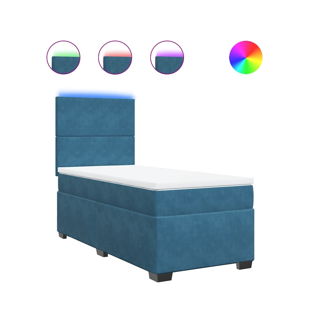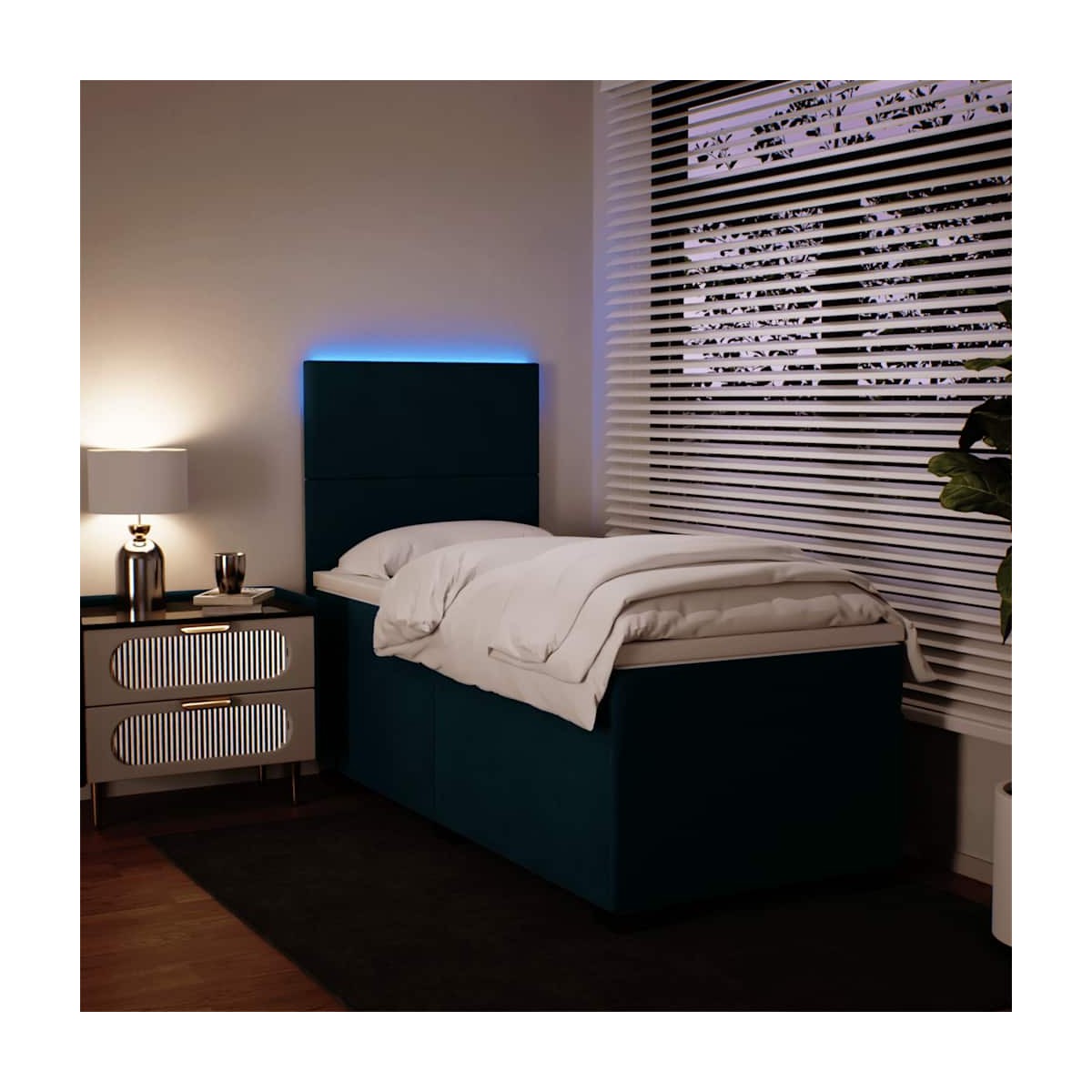 Utiliza esta cama de muelles para disfrutar de un sueño reparador. Te ofrece la máxima relajación y un sueño placentero.Material suave y cómodo: La tela de terciopelo ofrece una superficie suave y lisa que proporciona una agradable sensación contra el tacto, aportándole calidez y el máximo confort.Colchón de muelles ensacados: Este colchón de muelles ensacados cuenta con muelles ensacados individuales que funcionan de forma independiente para proporcionar un apoyo personalizado reaccionando únicamente a la presión de cada zona. Este diseño evita que se enrolle y reduce la transferencia de movimiento en comparación con los colchones tradicionales de bobina abierta. Cada muelle ensacado sostiene el cuerpo individualmente.Luces LED para un ambiente agradable: Esta cama cuenta con luces LED que se pueden ajustar fácilmente para crear un espectáculo de luces personalizado. Puedes personalizar los modos, los colores y el brillo para mejorar el ambiente de tu espacio interior.Cabecero regulable en altura: El cabecero es ajustable en altura para adaptarse a tus preferencias.Cubrecolchón cómodo: Este cubrecolchón mejora el soporte y la comodidad con su superficie suave y transpirable al tiempo que prolonga la vida útil de su colchón. Su funda extraíble permite un fácil lavado, lo que facilita el mantenimiento.Información útil:El producto tiene un conector USB que necesita una fuente de alimentación USB certificada de 5 V (no incluida).Por razones de higiene, el colchón no puede devolverse si se ha quitado o abierto el embalaje.Únicamente puedes cortar por la parte con el símbolo de las tijeras y únicamente la parte con el USB seguirá funcionando como antes.