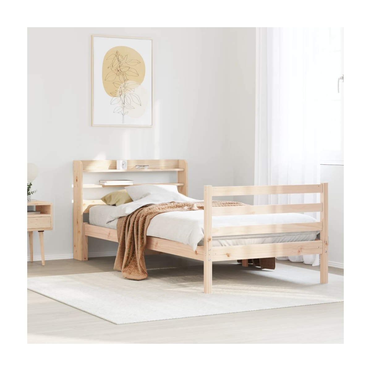 ¡Disfruta de una buena noche de sueño en esta estructura de cama de madera! Es un aporte práctico y decorativo para la casa. Madera de pino maciza: La madera de pino maciza es un bonito material natural. La madera de pino tiene vetas rectas, y los nudos dan al material su distintivo aspecto rústico.Listones prácticos: Los listones ofrecen una buena distribución del peso, lo que garantiza el tan necesario soporte y la transpirabilidad del colchón.Amplio espacio de almacenamiento: Este elegante cabecero de la cama cuenta con dos prácticos estantes, que ofrecen un amplio espacio de almacenamiento para tener todos tus artículos esenciales para la noche al alcance de la mano.Cabecero independiente: El cabecero independiente ofrece una solución sin complicaciones para colocarlo y reposicionarlo sin esfuerzo y sin necesidad de instalarlo en la pared. Información útil: El colchón no está incluido con la cama. Disponemos de una variada selección de colchones. Puedes echar un vistazo a nuestra tienda para buscar el colchón correspondiente.