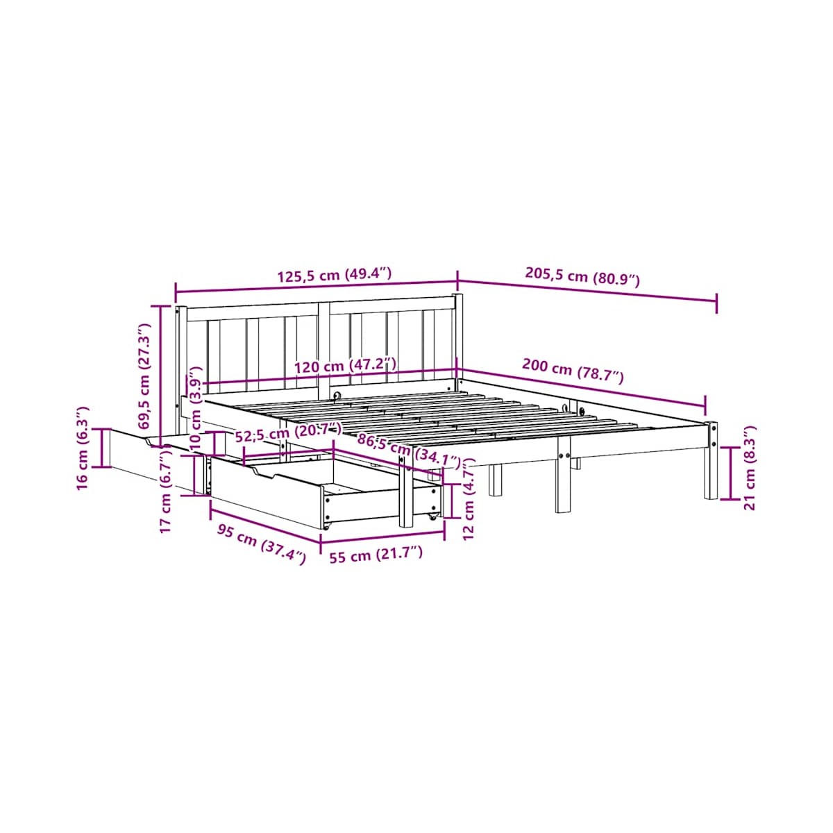 Consigue un sueño más reparador con esta estructura de cama. Es un aporte acogedor para cualquier dormitorio. Estructura estable y duradera: La madera de pino maciza es conocida por su resistencia y durabilidad. Sus vetas rectas y sus característicos nudos contribuyen a su encanto rústico.Somier de láminas para un soporte óptimo: La estructura de cama está equipada con un somier de láminas para el apoyo y la transpirabilidad del colchón.Aprovecha al máximo el espacio: Esta estructura de cama cuenta con dos cajones debajo, que proporcionan almacenamiento para artículos como ropa de cama extra, ropa de temporada y juguetes.Maniobrabilidad sin esfuerzo: Este cajón de almacenamiento bajo la cama cuenta con cuatro ruedas, que proporcionan una maniobrabilidad suave y sin esfuerzo para deslizarse dentro y fuera de debajo de tu cama. Información útil:El colchón no está incluido con la cama. Disponemos de una variada selección de colchones. Puedes echar un vistazo a nuestra tienda para buscar el colchón correspondiente.