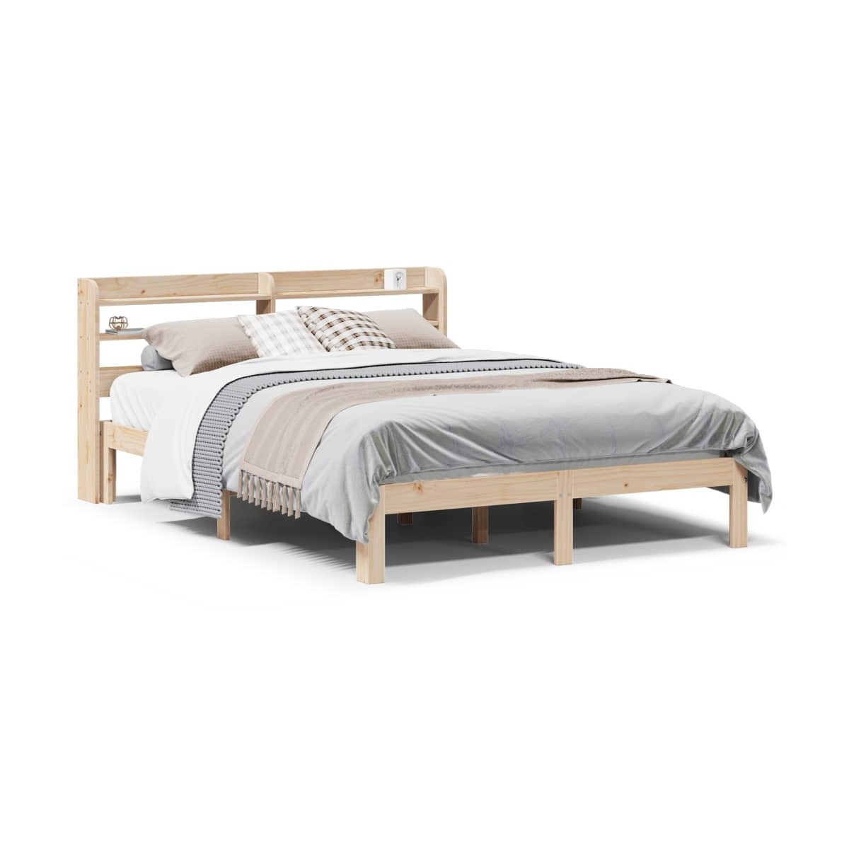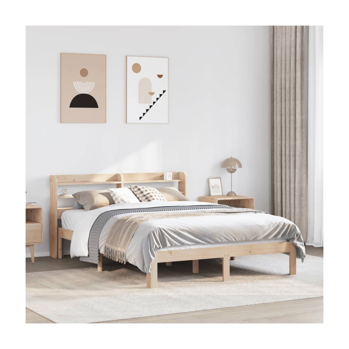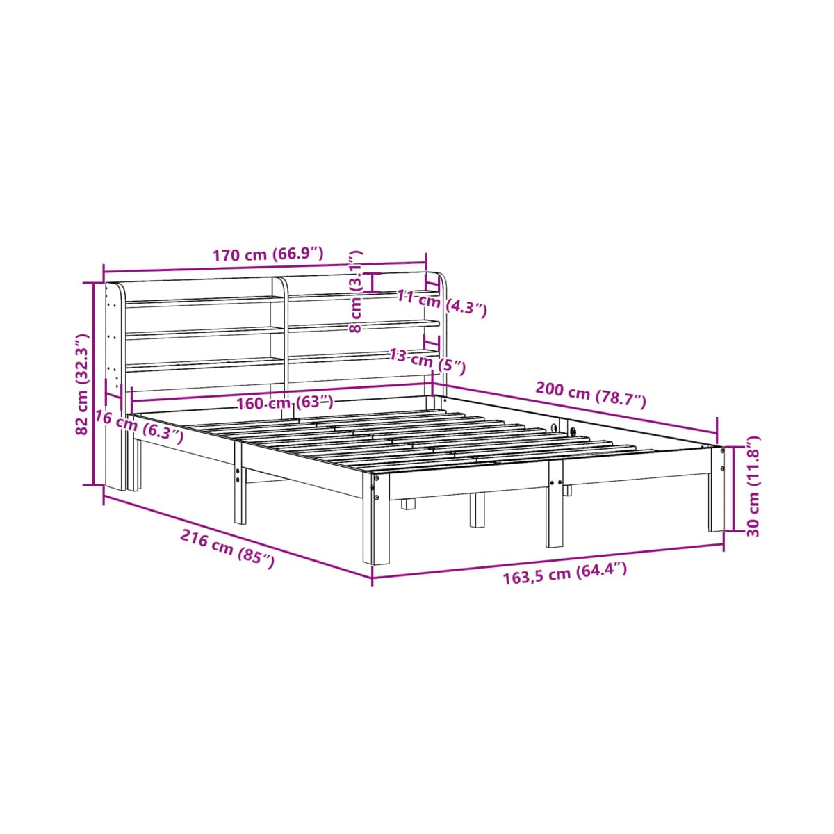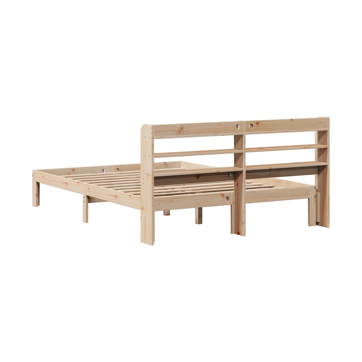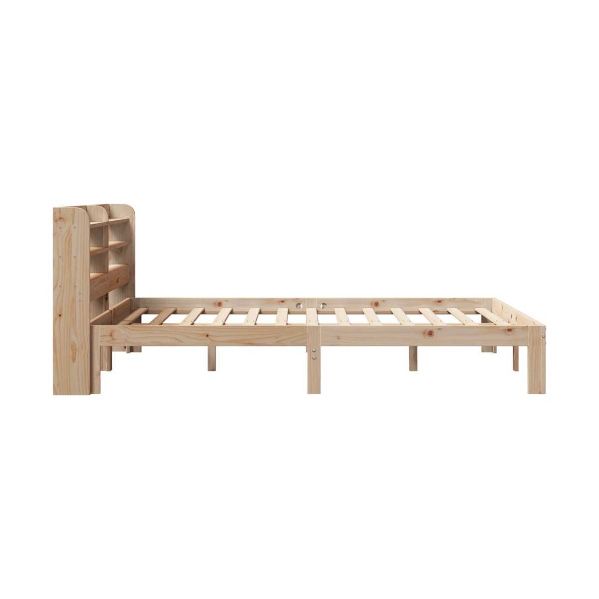¡Disfruta de una buena noche de sueño en esta estructura de cama de madera! Es un aporte práctico y decorativo para la casa. Madera de pino maciza: La madera de pino maciza es un bonito material natural. La madera de pino tiene vetas rectas, y los nudos dan al material su distintivo aspecto rústico.Listones de madera contrachapada: Los listones de madera contrachapada ofrecen una buena distribución del peso, lo que garantiza el tan necesario soporte y la transpirabilidad del colchón.Amplio espacio de almacenamiento: Este elegante cabecero de la cama cuenta con dos prácticos estantes, que ofrecen un amplio espacio de almacenamiento para tener todos tus artículos esenciales para la noche al alcance de la mano.Cabecero independiente: El cabecero independiente ofrece una solución sin complicaciones para colocarlo y reposicionarlo sin esfuerzo y sin necesidad de instalarlo en la pared. Información útil: El colchón no está incluido con la cama. Disponemos de una variada selección de colchones. Puedes echar un vistazo a nuestra tienda para buscar el colchón correspondiente.