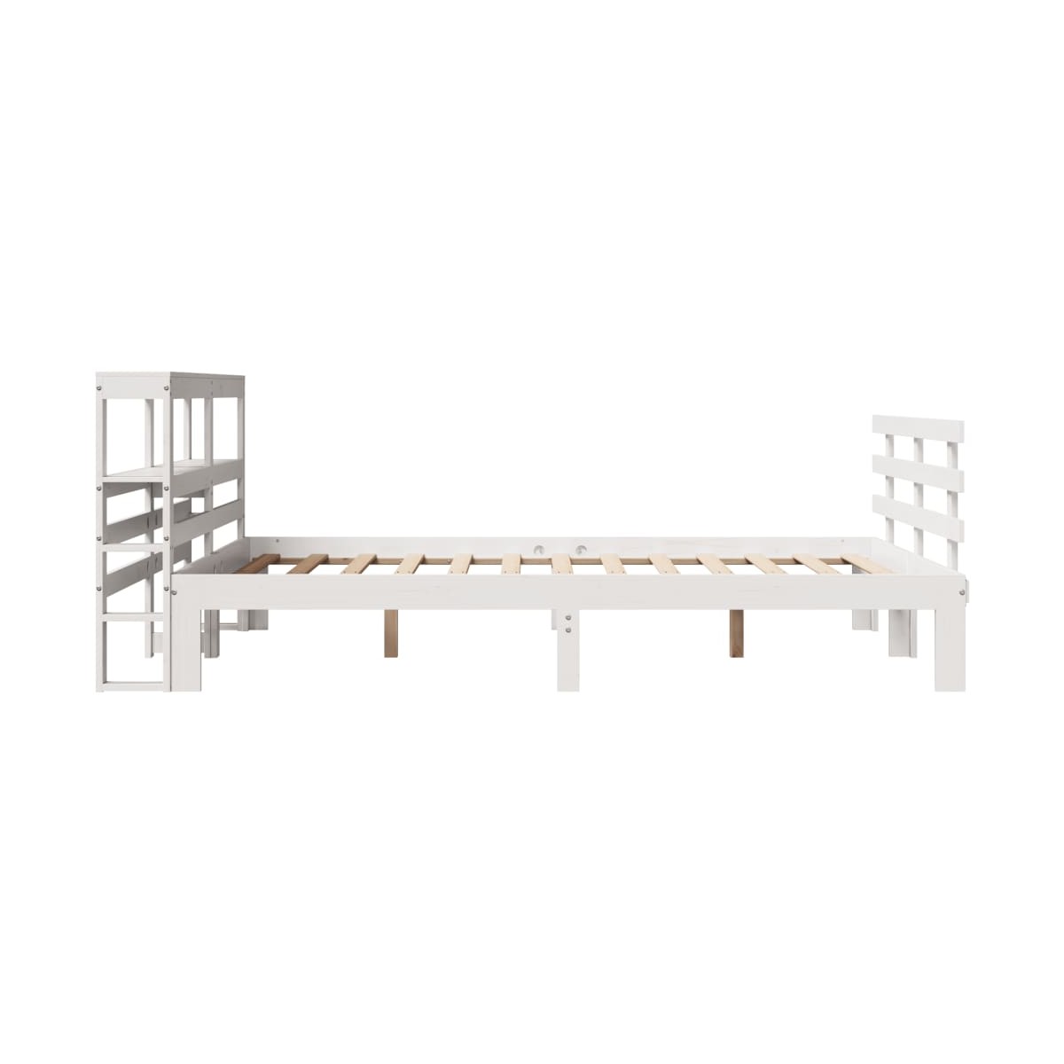 ¡Disfruta de una buena noche de sueño en esta estructura de cama de madera! Es un aporte práctico y decorativo para la casa. Madera de pino maciza: La madera de pino maciza es un bonito material natural. La madera de pino tiene vetas rectas, y los nudos dan al material su distintivo aspecto rústico.Estructura de cama resistente: La estructura de madera garantiza su solidez y estabilidad. Los listones de madera contrachapada proporcionan una buena distribución del peso, lo que garantiza que el colchón se mantenga en su sitio con cada giro y vuelta del cuerpo mientras duermes.Cabecero y estribo de cama útiles: El cabecero y el estribo de la cama de madera mantienen el colchón en su lugar. Además, la cabecera te brinda un excelente soporte para la espalda mientras estás sentado leyendo o mirando la televisión.Amplio espacio de almacenamiento: Este elegante cabecero cuenta con dos prácticos estantes, que ofrecen un amplio espacio de almacenamiento para tener todos tus artículos esenciales para la noche al alcance de la mano. Información útil:El colchón no está incluido con la cama. Disponemos de una variada selección de colchones. Puedes echar un vistazo a nuestra tienda para buscar el colchón correspondiente.