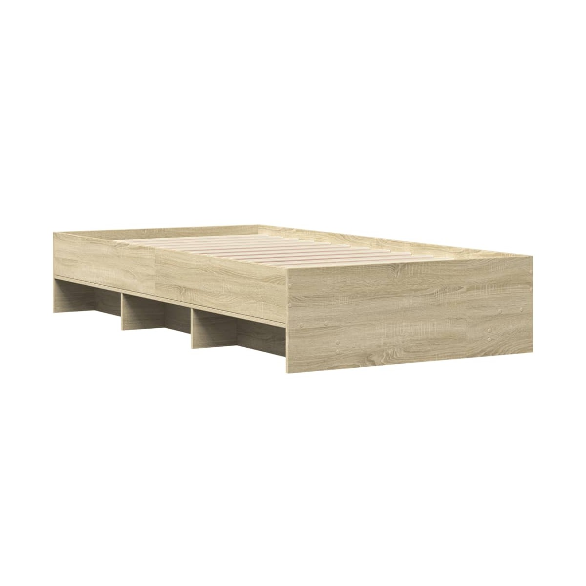 Consigue un sueño más reparador con esta estructura de cama. Es un aporte acogedor para cualquier dormitorio. Material duradero: La estructura de la cama está hecha de madera de ingeniería. La madera de ingeniería tiene una calidad excepcional, con una superficie lisa y también con fuerza, estabilidad y resistencia a la humedad.Somier de láminas para un soporte óptimo: La estructura de cama está equipada con un somier de láminas para el apoyo y la transpirabilidad del colchón.Función de almacenamiento: Este somier ofrece compartimentos abiertos para mantener tus revistas, libros, juguetes y otros objetos pequeños bien organizados. Información útil:El colchón no está incluido con la cama. Disponemos de una variada selección de colchones. Puedes echar un vistazo a nuestra tienda para buscar el colchón correspondiente.