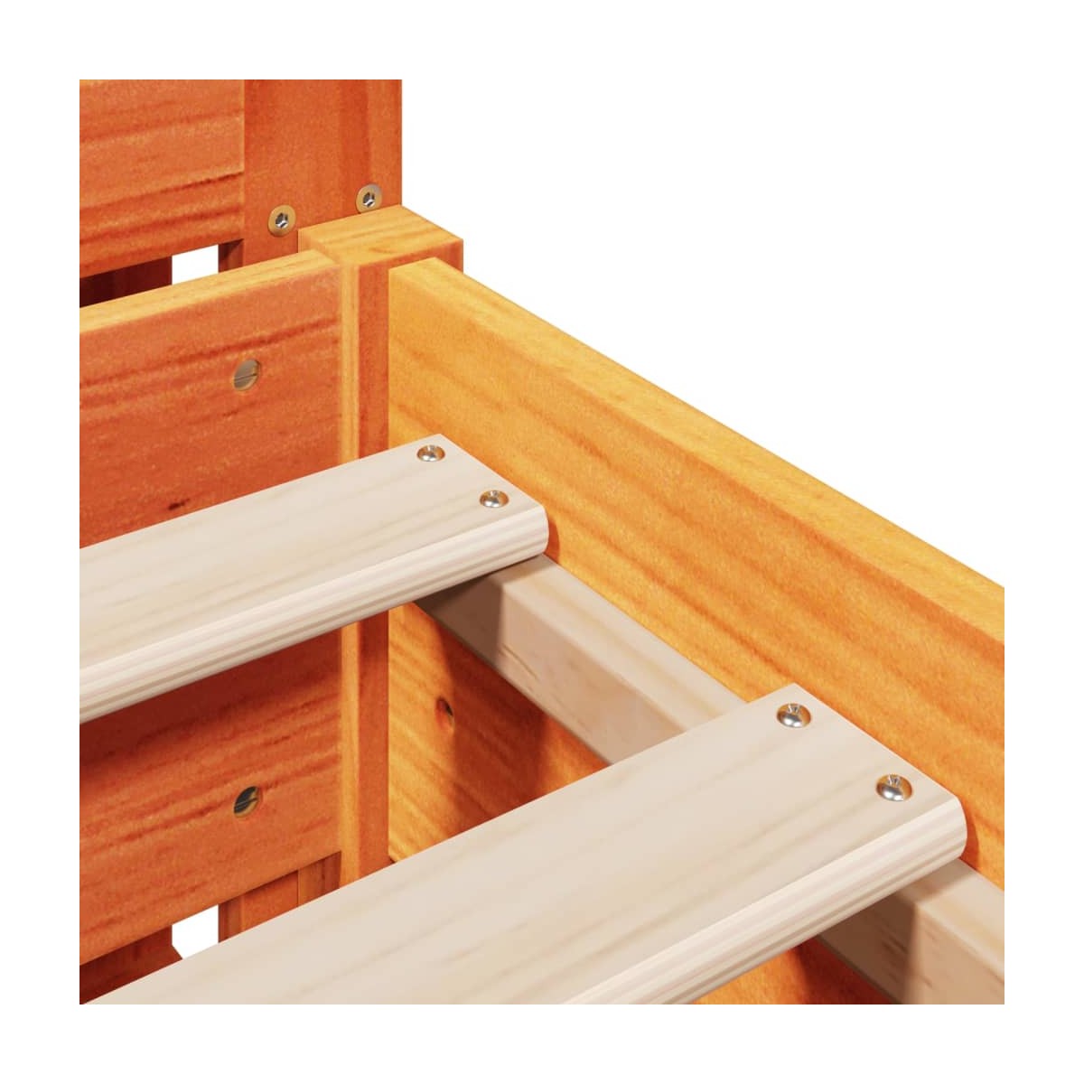 Consigue un sueño más reparador con esta estructura de cama. Es un aporte acogedor para cualquier dormitorio. Estructura estable y duradera: La madera de pino maciza es conocida por su resistencia y durabilidad. Sus vetas rectas y sus característicos nudos contribuyen a su encanto rústico.Somier de láminas para un soporte óptimo: La estructura de cama está equipada con un somier de láminas para el apoyo y la transpirabilidad del colchón.Cabecero versátil: Esta estructura de cama viene con un cabecero que proporciona un excelente soporte para la espalda cuando te sientas en la cama para leer o ver la televisión, a la vez que sirve como elemento decorativo.Amplio espacio de almacenamiento: Este elegante cabecero cuenta con dos prácticos estantes, que ofrecen un amplio espacio de almacenamiento para tener todos tus artículos esenciales para la noche al alcance de la mano. Información útil:El colchón no está incluido con la cama. Disponemos de una variada selección de colchones. Puedes echar un vistazo a nuestra tienda para buscar el colchón correspondiente.