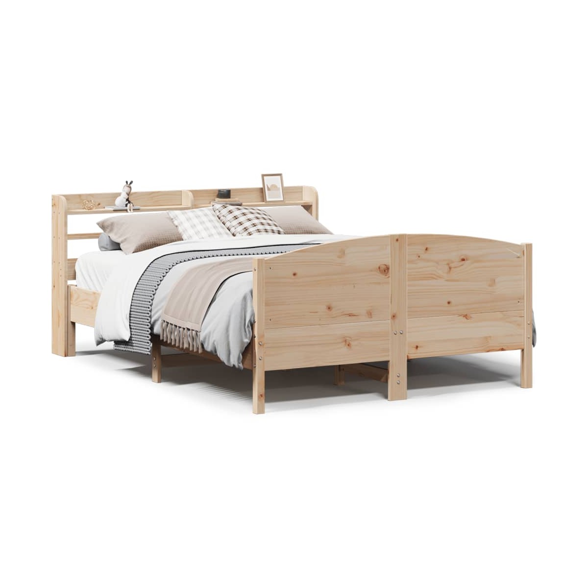 Consigue un sueño más reparador con esta estructura de cama. Es un aporte acogedor para cualquier dormitorio. Estructura estable y duradera: La madera de pino maciza es conocida por su resistencia y durabilidad. Sus vetas rectas y sus característicos nudos contribuyen a su encanto rústico.Somier de láminas para un soporte óptimo: La estructura de cama está equipada con un somier de láminas para el apoyo y la transpirabilidad del colchón.Cabecero versátil: Esta estructura de cama viene con un cabecero que proporciona un excelente soporte para la espalda cuando te sientas en la cama para leer o ver la televisión, a la vez que sirve como elemento decorativo.Amplio espacio de almacenamiento: Este elegante cabecero cuenta con tres prácticos estantes, que ofrecen un amplio espacio de almacenamiento para mantener todos tus objetos esenciales nocturnos al alcance de la mano. Información útil:El colchón no está incluido con la cama. Disponemos de una variada selección de colchones. Puedes echar un vistazo a nuestra tienda para buscar el colchón correspondiente.