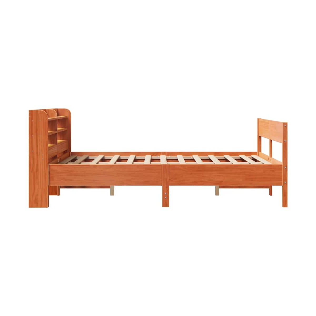 Consigue un sueño más reparador con esta estructura de cama. Es un aporte acogedor para cualquier dormitorio. Estructura estable y duradera: La madera de pino maciza es conocida por su resistencia y durabilidad. Sus vetas rectas y sus característicos nudos contribuyen a su encanto rústico.Somier de láminas para un soporte óptimo: La estructura de cama está equipada con un somier de láminas para el apoyo y la transpirabilidad del colchón.Cabecero versátil: Esta estructura de cama viene con un cabecero que proporciona un excelente soporte para la espalda cuando te sientas en la cama para leer o ver la televisión, a la vez que sirve como elemento decorativo.Amplio espacio de almacenamiento: Este elegante cabecero cuenta con tres prácticos estantes, que ofrecen un amplio espacio de almacenamiento para mantener todos tus objetos esenciales nocturnos al alcance de la mano. Información útil:El colchón no está incluido con la cama. Disponemos de una variada selección de colchones. Puedes echar un vistazo a nuestra tienda para buscar el colchón correspondiente.