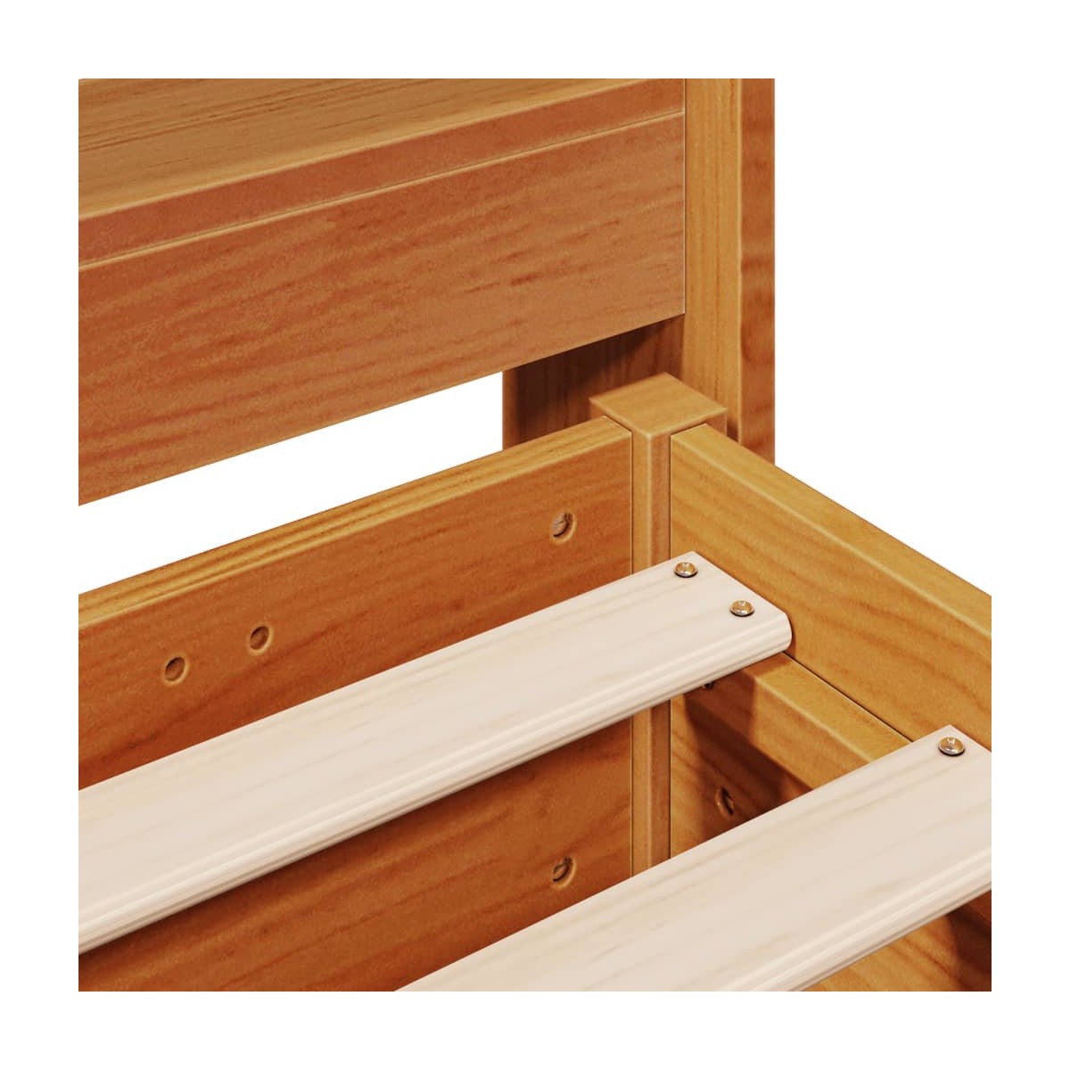Consigue un sueño más reparador con esta estructura de cama. Es un aporte acogedor para cualquier dormitorio. Estructura estable y duradera: La madera de pino maciza es conocida por su resistencia y durabilidad. Sus vetas rectas y sus característicos nudos contribuyen a su encanto rústico.Somier de láminas para un soporte óptimo: La estructura de cama está equipada con un somier de láminas para el apoyo y la transpirabilidad del colchón.Cabecero versátil: Esta estructura de cama viene con un cabecero que proporciona un excelente soporte para la espalda cuando te sientas en la cama para leer o ver la televisión, a la vez que sirve como elemento decorativo.Amplio espacio de almacenamiento: Este elegante cabecero cuenta con tres prácticos estantes, que ofrecen un amplio espacio de almacenamiento para mantener todos tus objetos esenciales nocturnos al alcance de la mano. Información útil:El colchón no está incluido con la cama. Disponemos de una variada selección de colchones. Puedes echar un vistazo a nuestra tienda para buscar el colchón correspondiente.
