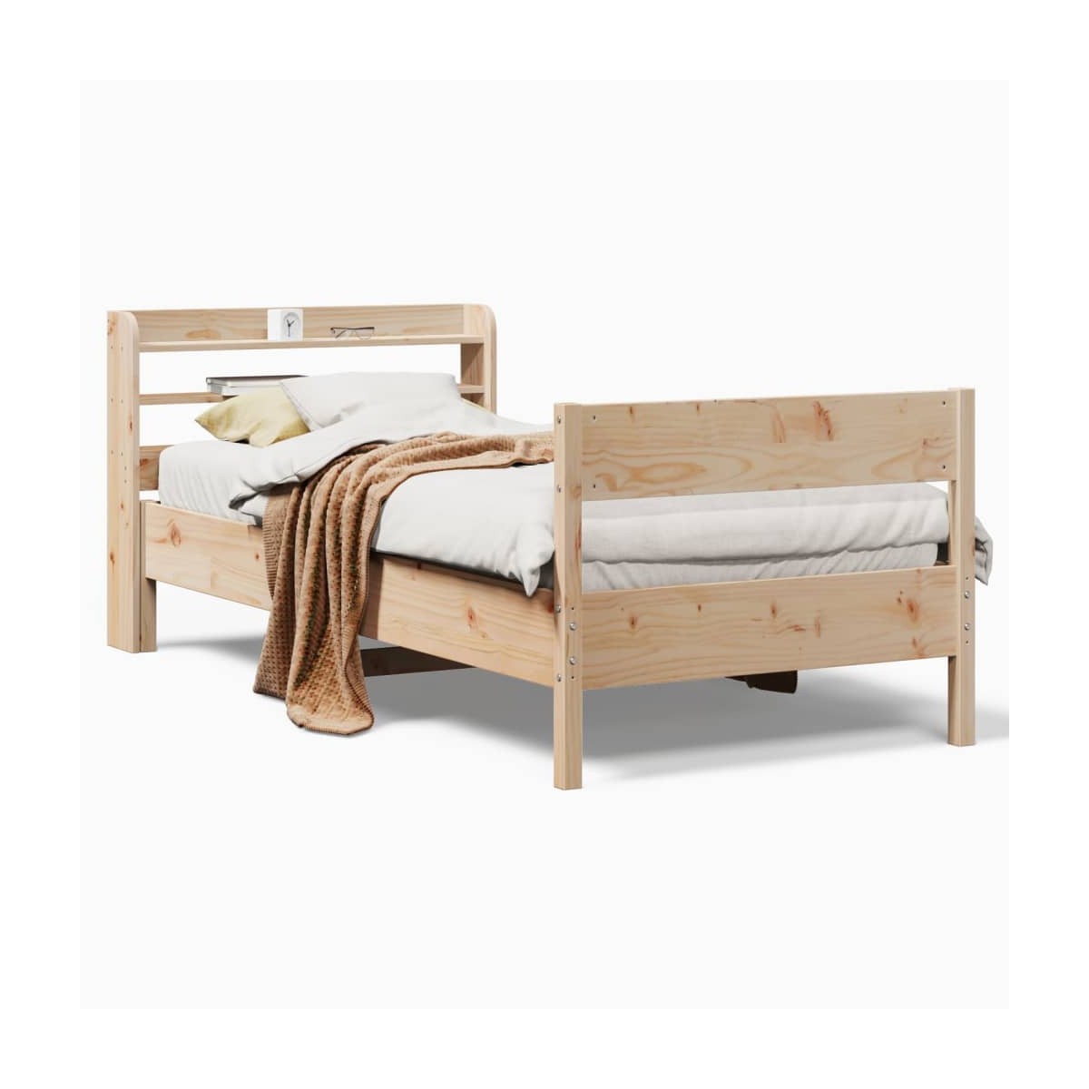 Consigue un sueño más reparador con esta estructura de cama. Es un aporte acogedor para cualquier dormitorio. Estructura estable y duradera: La madera de pino maciza es conocida por su resistencia y durabilidad. Sus vetas rectas y sus característicos nudos contribuyen a su encanto rústico.Somier de láminas para un soporte óptimo: La estructura de cama está equipada con un somier de láminas para el apoyo y la transpirabilidad del colchón.Cabecero versátil: Esta estructura de cama viene con un cabecero que proporciona un excelente soporte para la espalda cuando te sientas en la cama para leer o ver la televisión, a la vez que sirve como elemento decorativo.Amplio espacio de almacenamiento: Este elegante cabecero cuenta con tres prácticos estantes, que ofrecen un amplio espacio de almacenamiento para mantener todos tus objetos esenciales nocturnos al alcance de la mano. Información útil:El colchón no está incluido con la cama. Disponemos de una variada selección de colchones. Puedes echar un vistazo a nuestra tienda para buscar el colchón correspondiente.