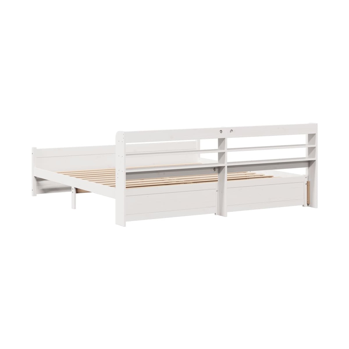 ¡Disfruta de una buena noche de sueño en esta estructura de cama de madera! Es un aporte práctico y decorativo para la casa. Madera de pino maciza: La madera de pino maciza es un bonito material natural. La madera de pino tiene vetas rectas, y los nudos dan al material su distintivo aspecto rústico.Estructura de cama resistente: La estructura de madera garantiza su solidez y estabilidad. Los listones de madera contrachapada proporcionan una buena distribución del peso, lo que garantiza que el colchón se mantenga en su sitio con cada giro y vuelta del cuerpo mientras duermes.Cabecero y estribo de cama útiles: El cabecero y el estribo de la cama de madera mantienen el colchón en su lugar. Además, la cabecera te brinda un excelente soporte para la espalda mientras estás sentado leyendo o mirando la televisión.Amplio espacio de almacenamiento: Este elegante cabecero cuenta con dos prácticos estantes, que ofrecen un amplio espacio de almacenamiento para tener todos tus artículos esenciales para la noche al alcance de la mano. Información útil:El colchón no está incluido con la cama. Disponemos de una variada selección de colchones. Puedes echar un vistazo a nuestra tienda para buscar el colchón correspondiente.