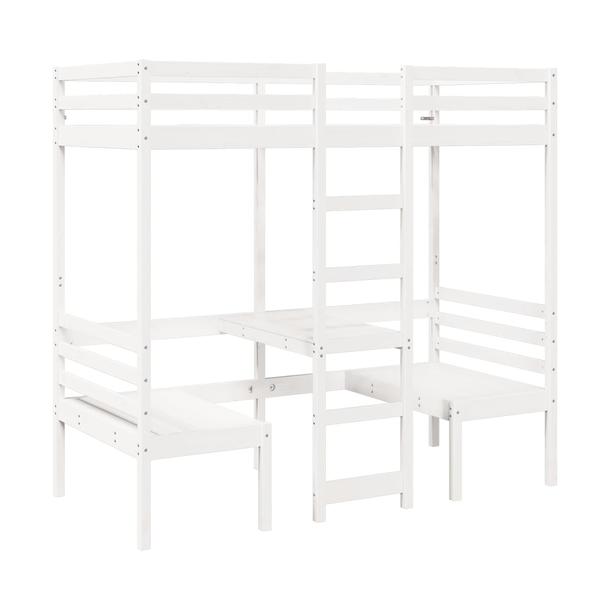 Esta versátil cama alta integra una cama individual con escritorio y sillas, proporcionando un acogedor espacio para dormir y una amplia zona de trabajo. Es una opción ideal para viviendas con espacio limitado.Estructura estable y duradera: La madera de pino maciza es conocida por su resistencia y durabilidad. Sus vetas rectas y sus característicos nudos contribuyen a su encanto rústico.Maximiza el aprovechamiento del espacio: Esta estructura de cama cuenta con un escritorio y dos sillas debajo, lo que permite aprovechar eficazmente el espacio debajo de la cama para proporcionar un espacio acogedor para trabajar y estudiar. Es una opción ideal para zonas más pequeñas o más confinadas.Fácil de subir y bajar: Este somier cuenta con una escalera incorporada, que proporciona un cómodo acceso para que los usuarios suban y bajen.Barandillas para mayor seguridad: Este somier está equipado con barandillas para evitar que te caigas de la cama mientras duermes.Somier de láminas para un soporte óptimo: La estructura de cama está equipada con un somier de láminas para el apoyo y la transpirabilidad del colchón.Advertencia:Para evitar que vuelque, este producto debe usarse con el dispositivo de fijación a la pared suministrado.Información útil:El colchón no está incluido con la cama. Disponemos de una variada selección de colchones. Puedes echar un vistazo a nuestra tienda para buscar el colchón correspondiente.Los tornillos y los tacos para el interior de la pared no están incluidos. Recomendamos encontrar y utilizar tornillos y tacos adecuados específicamente para las paredes. Si no estás seguro, puedes consultar con un profesional. Lee y sigue cada paso de las instrucciones.