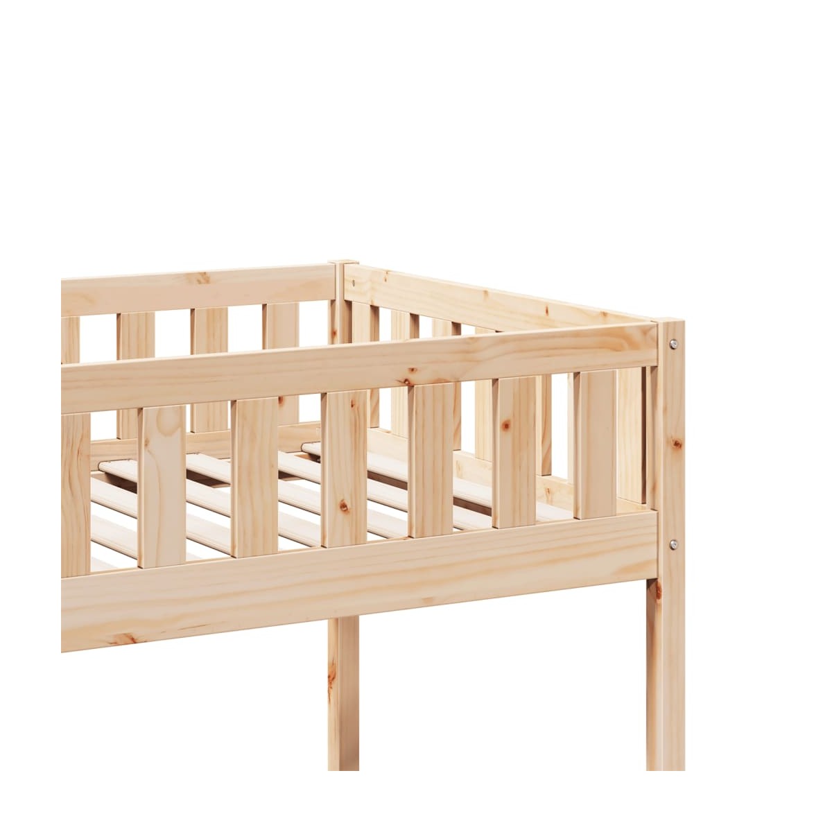 Consigue un sueño más reparador con esta cama para niños. Es un aporte acogedor para cualquier dormitorio.Estructura estable y duradera: La madera de pino maciza es conocida por su resistencia y durabilidad. Sus vetas rectas y sus característicos nudos contribuyen a su encanto rústico.Somier de láminas para un soporte óptimo: La estructura de cama está equipada con un somier de láminas para el apoyo y la transpirabilidad del colchón.Patas estables y duraderas: Esta cama está sostenida por patas resistentes, lo que garantiza estabilidad, seguridad y firmeza.Valla de seguridad: Hay vallas alrededor de la cama para evitar que tu hijo se dé la vuelta y se caiga de la cama mientras duerme.Información útil:Ten en cuenta que la entrega incluye únicamente una estructura de cama. El colchón no está incluido. Puedes echar un vistazo a nuestra tienda para buscar el correspondiente colchón.
