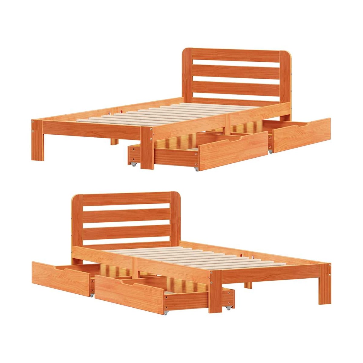 Consigue un sueño más reparador con esta estructura de cama. Es un aporte acogedor para cualquier dormitorio. Estructura estable y duradera: La madera de pino maciza es conocida por su resistencia y durabilidad. Sus vetas rectas y sus característicos nudos contribuyen a su encanto rústico.Somier de láminas para un soporte óptimo: El base de cama está equipado con un somier de láminas para el apoyo y la transpirabilidad del colchón.Maniobrabilidad sin esfuerzo: Este cajón de almacenamiento bajo la cama cuenta con cuatro ruedas, que proporcionan una maniobrabilidad suave y sin esfuerzo para deslizarse dentro y fuera de debajo de tu cama.Patas estables y duraderas: Este somier está sostenido por patas resistentes, lo que garantiza estabilidad, seguridad y firmeza.Cabecero versátil: Esta cama de paneles viene con un cabecero que proporciona un excelente soporte para la espalda cuando te sientas en la cama para leer o ver la televisión, a la vez que sirve como elemento decorativo. Información útil:El colchón no está incluido con la cama. Disponemos de una variada selección de colchones. Puedes echar un vistazo a nuestra tienda para buscar el colchón correspondiente.