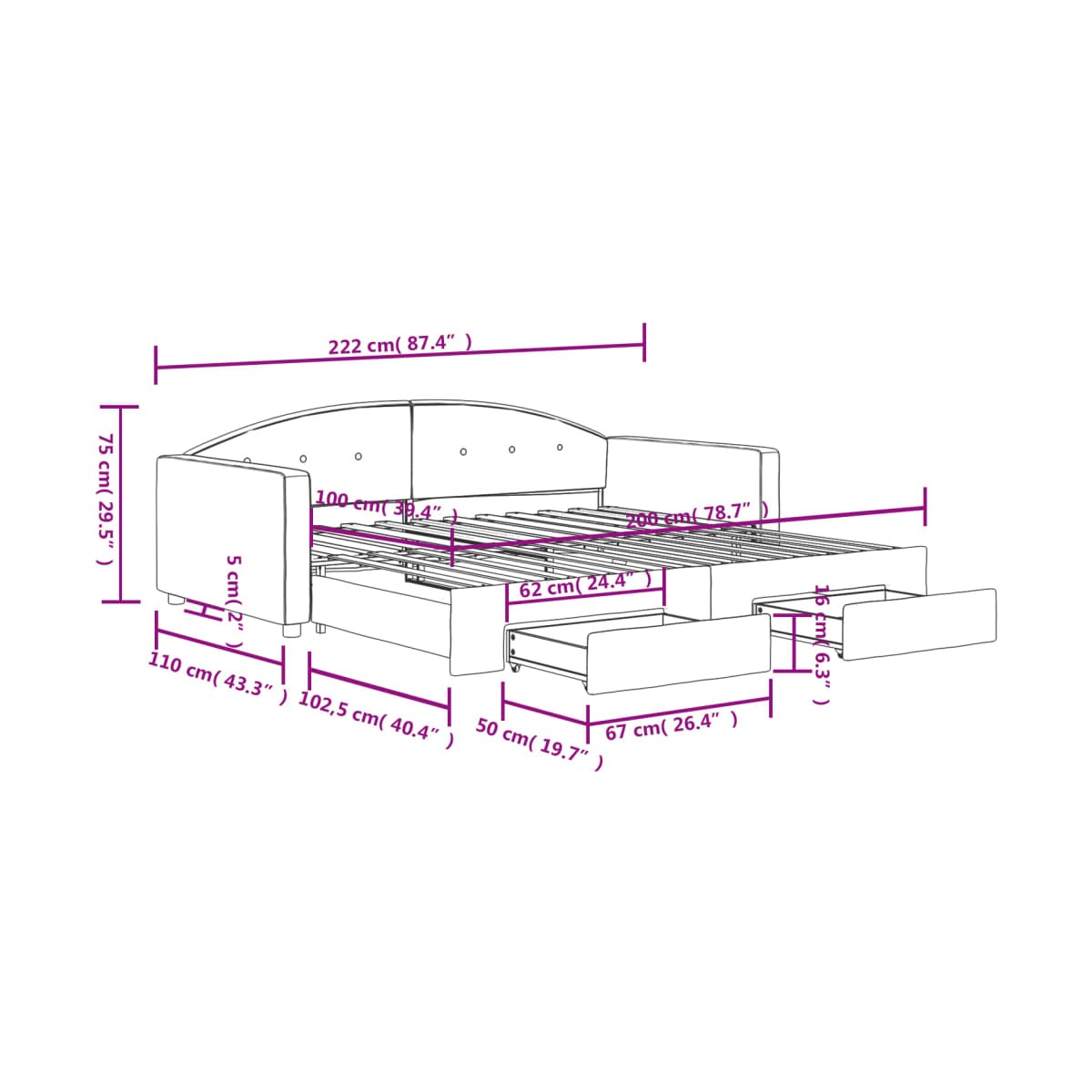 Este sofá cama 2 en 1 con cama nido y cajones, que sirve como sofá y cama, es un complemento práctico y llamativo para tu salón o dormitorio. Sofá cama versátil: El sofá cama funciona como sofá durante el día y se convierte fácilmente en una cama doble por la noche sacando la cama nido, lo que proporciona una solución práctica para recibir invitados y maximizar el espacio.Amplio espacio de almacenamiento: Esta cama de invitados tiene dos cajones con ruedas que brindan un amplio espacio para guardar ropa, calcetines, juguetes, cojines, etc.Terciopelo suave y construcción sólida: Este sofá cama tiene una estructura resistente hecha de madera y metal y está tapizado en terciopelo suave y cómodo. Información útil:El colchón no está incluido con la cama. Ofrecemos una variada selección de colchones. Puedes echar un vistazo a nuestra tienda para buscar el correspondiente colchón.