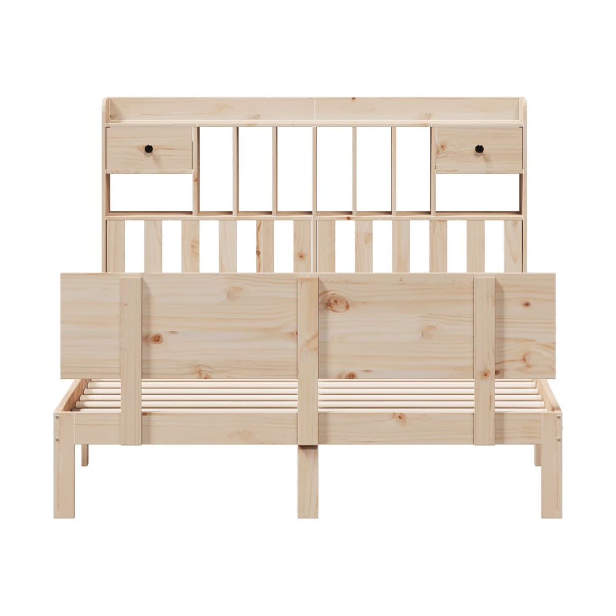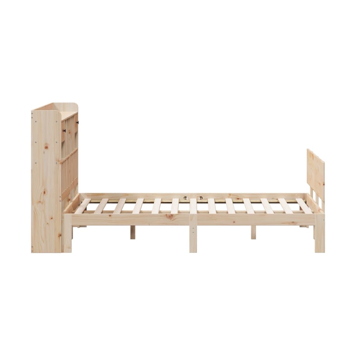 ¡Consigue una mejor noche de sueño reparador con esta cama con estantería! Es un aporte acogedor para cualquier dormitorio. Estructura estable y duradera: La madera de pino maciza es conocida por su resistencia y durabilidad. Sus vetas rectas y sus característicos nudos contribuyen a su encanto rústico. Somier de láminas para un soporte óptimo: La estructura de cama está equipada con un somier de láminas para el apoyo y la transpirabilidad del colchón. Amplio espacio de almacenamiento: El cabecero de estantería ofrece un amplio espacio de almacenamiento para mantener libros, artículos decorativos o pertenencias personales al alcance de la mano, lo que reduce el desorden en el dormitorio. Práctico pie de cama: El pie de cama no solo contribuye a la estabilidad general del marco de la cama, proporcionando un entorno seguro para dormir, sino que también asegura su colchón en su lugar y evita que las mantas, sábanas y otra ropa de cama se caigan del extremo de la cama, manteniendo una apariencia ordenada. Ahorro de espacio: Este cabecero es una opción de ahorro de espacio que puede sustituir la necesidad de una mesilla de noche, ayudando a maximizar el espacio de tu dormitorio, y haciéndolo ideal para espacios pequeños o limitados. Información útil:El colchón no está incluido con la cama. Disponemos de una variada selección de colchones. Puedes echar un vistazo a nuestra tienda para buscar el colchón correspondiente.