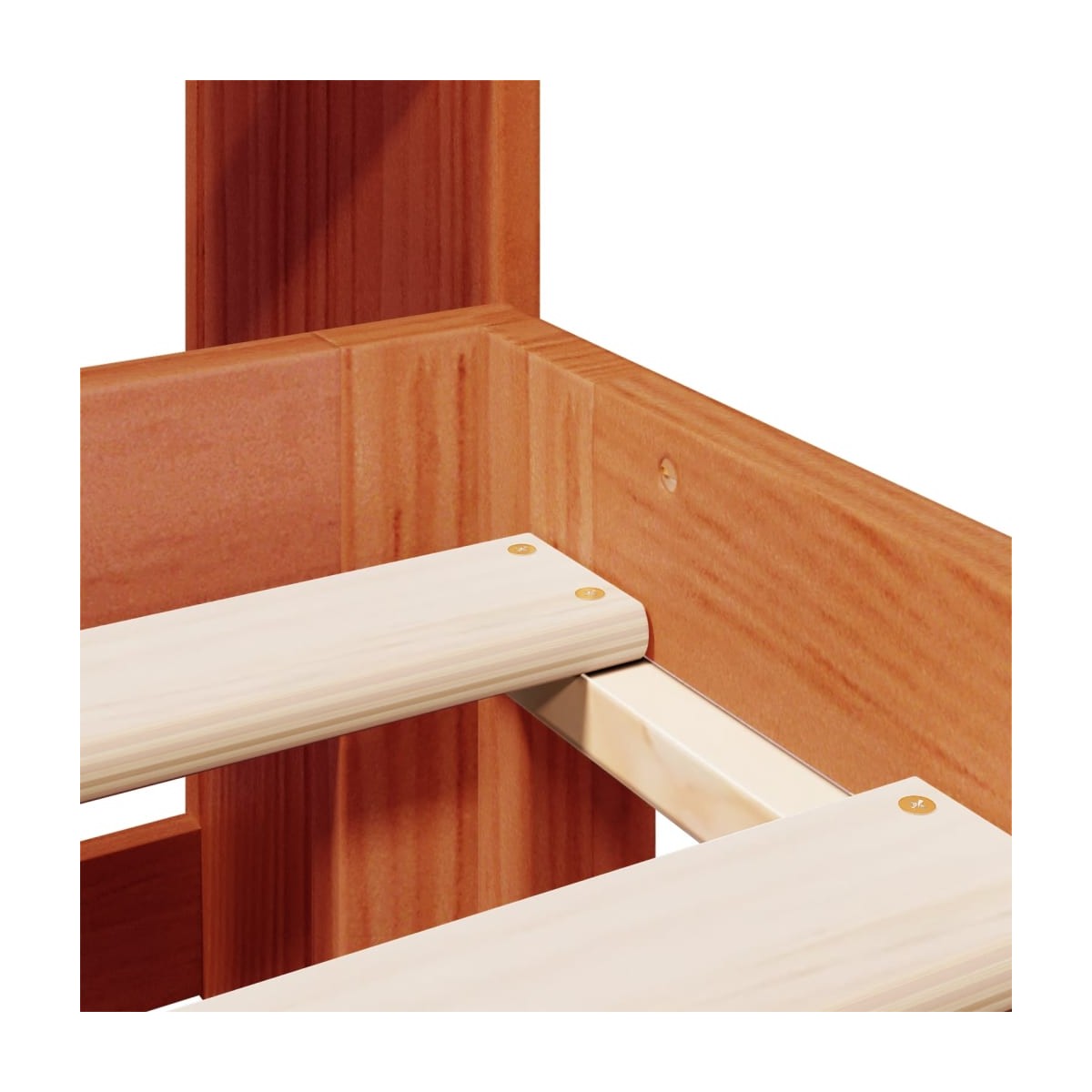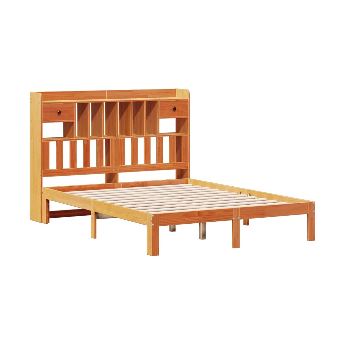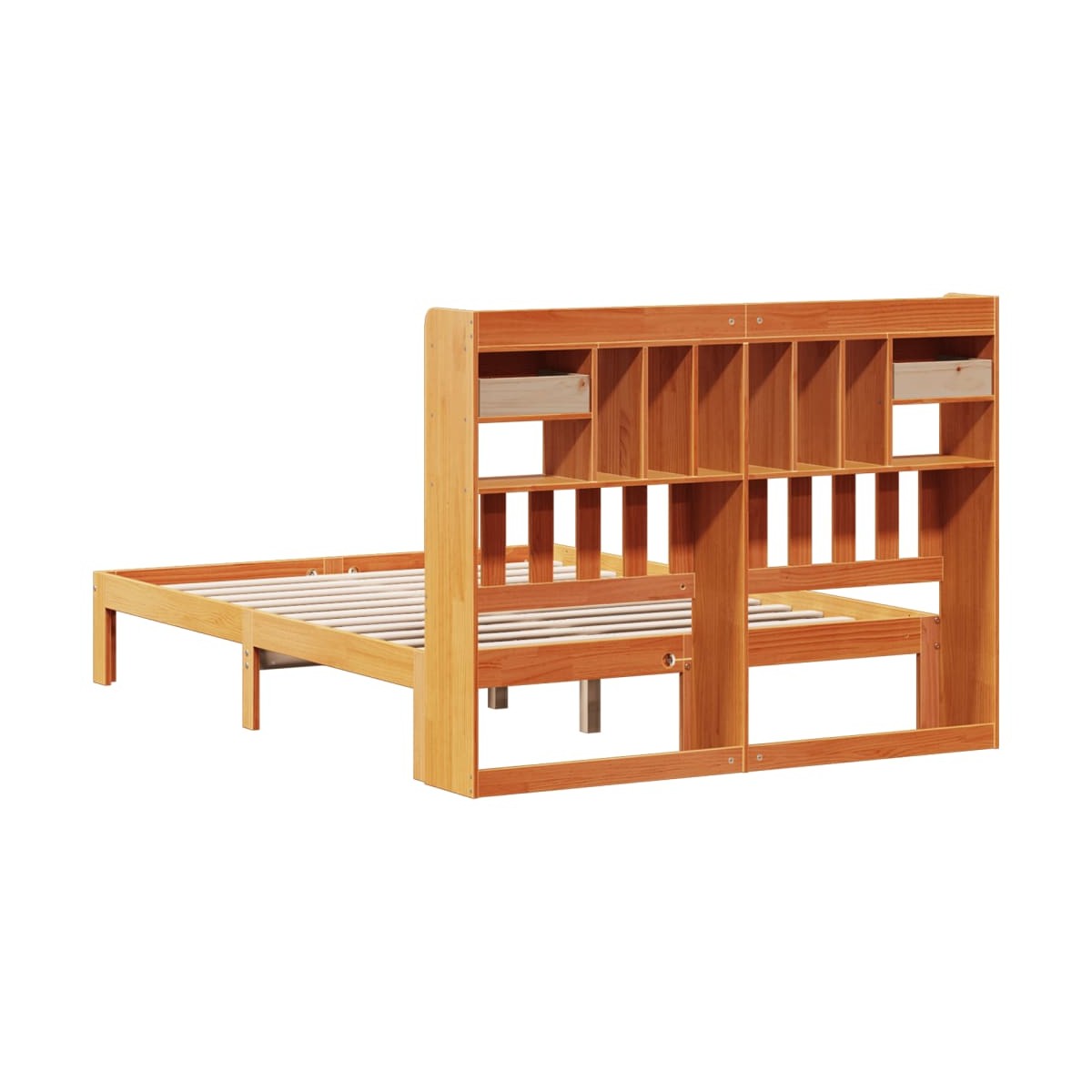 ¡Consigue una mejor noche de sueño reparador con esta cama con estantería! Es un aporte acogedor para cualquier dormitorio. Estructura estable y duradera: La madera de pino maciza es conocida por su resistencia y durabilidad. Sus vetas rectas y sus característicos nudos contribuyen a su encanto rústico. Somier de láminas para un soporte óptimo: La estructura de cama está equipada con un somier de láminas para el apoyo y la transpirabilidad del colchón. Amplio espacio de almacenamiento: El cabecero de estantería ofrece un amplio espacio de almacenamiento para mantener libros, artículos decorativos o pertenencias personales al alcance de la mano, lo que reduce el desorden en el dormitorio. Ahorro de espacio: Este cabecero es una opción de ahorro de espacio que puede sustituir la necesidad de una mesilla de noche, ayudando a maximizar el espacio de tu dormitorio, y haciéndolo ideal para espacios pequeños o limitados. Información útil:El colchón no está incluido con la cama. Disponemos de una variada selección de colchones. Puedes echar un vistazo a nuestra tienda para buscar el colchón correspondiente.