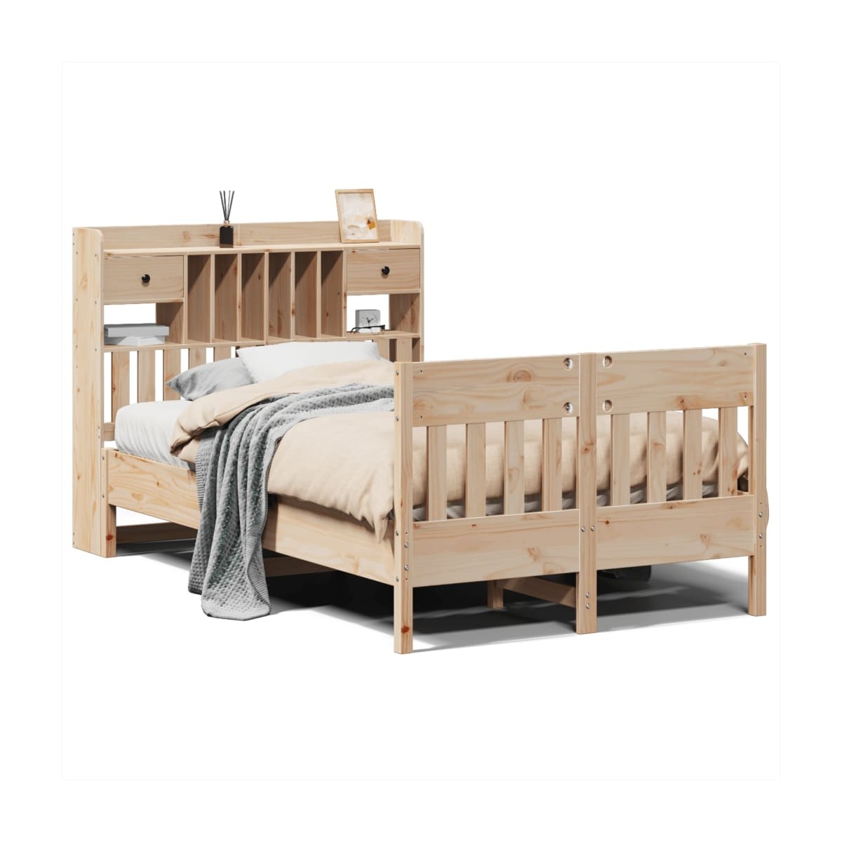 ¡Disfruta de una buena noche de sueño en esta estructura de cama de madera! Es un aporte práctico y decorativo para la casa. Estructura estable y duradera: La madera de pino maciza es conocida por su resistencia y durabilidad. Sus vetas rectas y sus característicos nudos contribuyen a su encanto rústico.Somier de láminas para un soporte óptimo: El base de cama está equipado con un somier de láminas para el apoyo y la transpirabilidad del colchón.Espacio de almacenamiento extra: Este elegante cabecero cuenta con 6 prácticos compartimentos y 2 cajones, lo que ofrece un amplio espacio de almacenamiento para mantener todos tus artículos esenciales de la noche al alcance de la mano. Para mayor comodidad, la cama de madera tiene un espacio adicional debajo para mantener tus cajas de almacenamiento fuera de la vista.Patas estables y duraderas: Este somier está sostenido por patas resistentes, lo que garantiza estabilidad, seguridad y firmeza.Cabecero y estribo de cama funcionales: El cabecero y el estribo de cama mantienen el colchón en su lugar. Además, la cabecera te brinda un excelente soporte para la espalda mientras estás sentado leyendo o mirando la televisión. Información útil:El colchón no está incluido con la cama. Disponemos de una variada selección de colchones. Puedes echar un vistazo a nuestra tienda para buscar el colchón correspondiente.