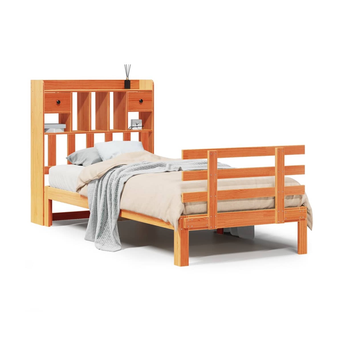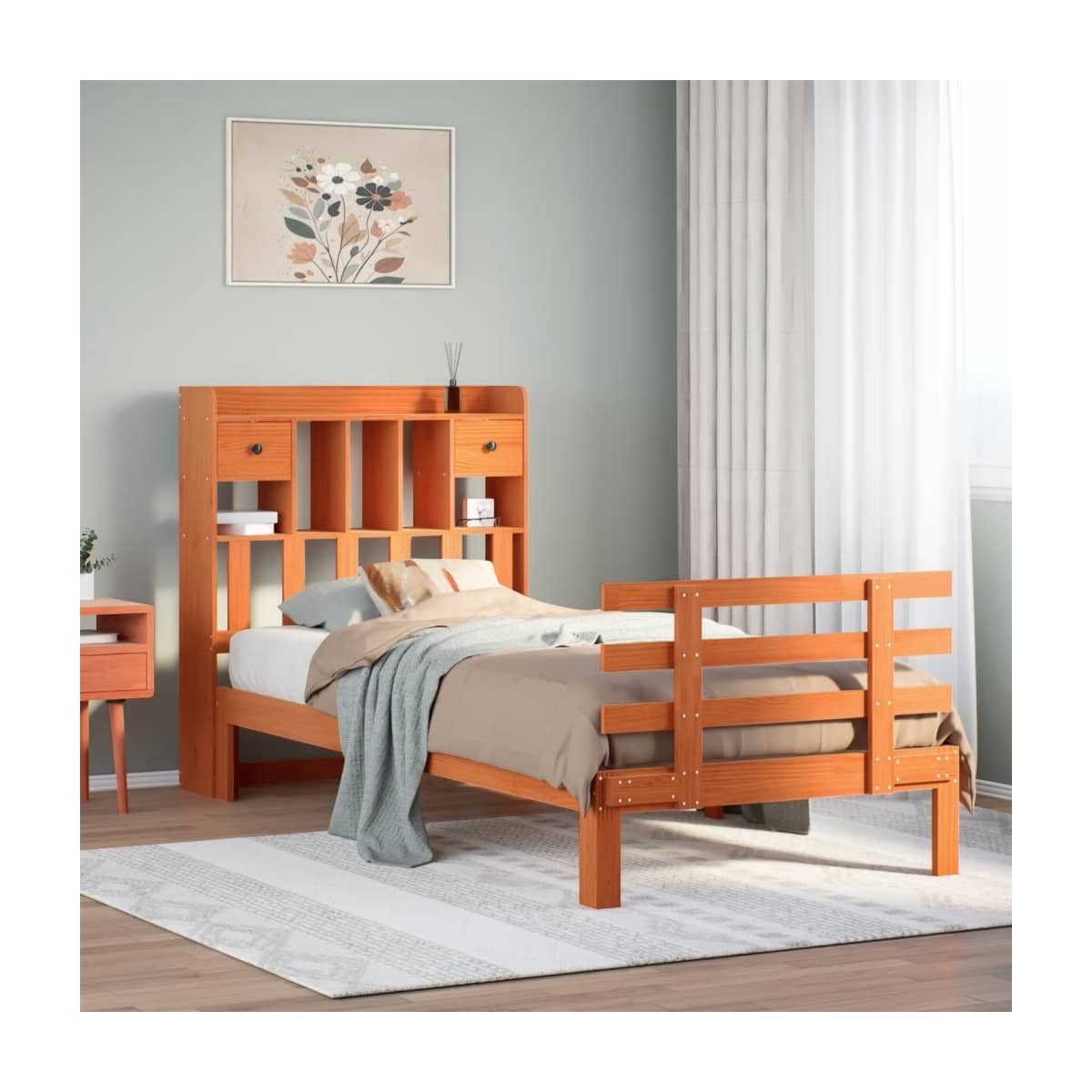 ¡Consigue una mejor noche de sueño reparador con esta cama con estantería! Es un aporte acogedor para cualquier dormitorio. Estructura estable y duradera: La madera de pino maciza es conocida por su resistencia y durabilidad. Sus vetas rectas y sus característicos nudos contribuyen a su encanto rústico. Somier de láminas para un soporte óptimo: La estructura de cama está equipada con un somier de láminas para el apoyo y la transpirabilidad del colchón. Amplio espacio de almacenamiento: El cabecero de estantería ofrece un amplio espacio de almacenamiento para mantener libros, artículos decorativos o pertenencias personales al alcance de la mano, lo que reduce el desorden en el dormitorio. Práctico pie de cama: El pie de cama no solo contribuye a la estabilidad general del marco de la cama, proporcionando un entorno seguro para dormir, sino que también asegura su colchón en su lugar y evita que las mantas, sábanas y otra ropa de cama se caigan del extremo de la cama, manteniendo una apariencia ordenada. Ahorro de espacio: Este cabecero es una opción de ahorro de espacio que puede sustituir la necesidad de una mesilla de noche, ayudando a maximizar el espacio de tu dormitorio, y haciéndolo ideal para espacios pequeños o limitados. Información útil:El colchón no está incluido con la cama. Disponemos de una variada selección de colchones. Puedes echar un vistazo a nuestra tienda para buscar el colchón correspondiente.