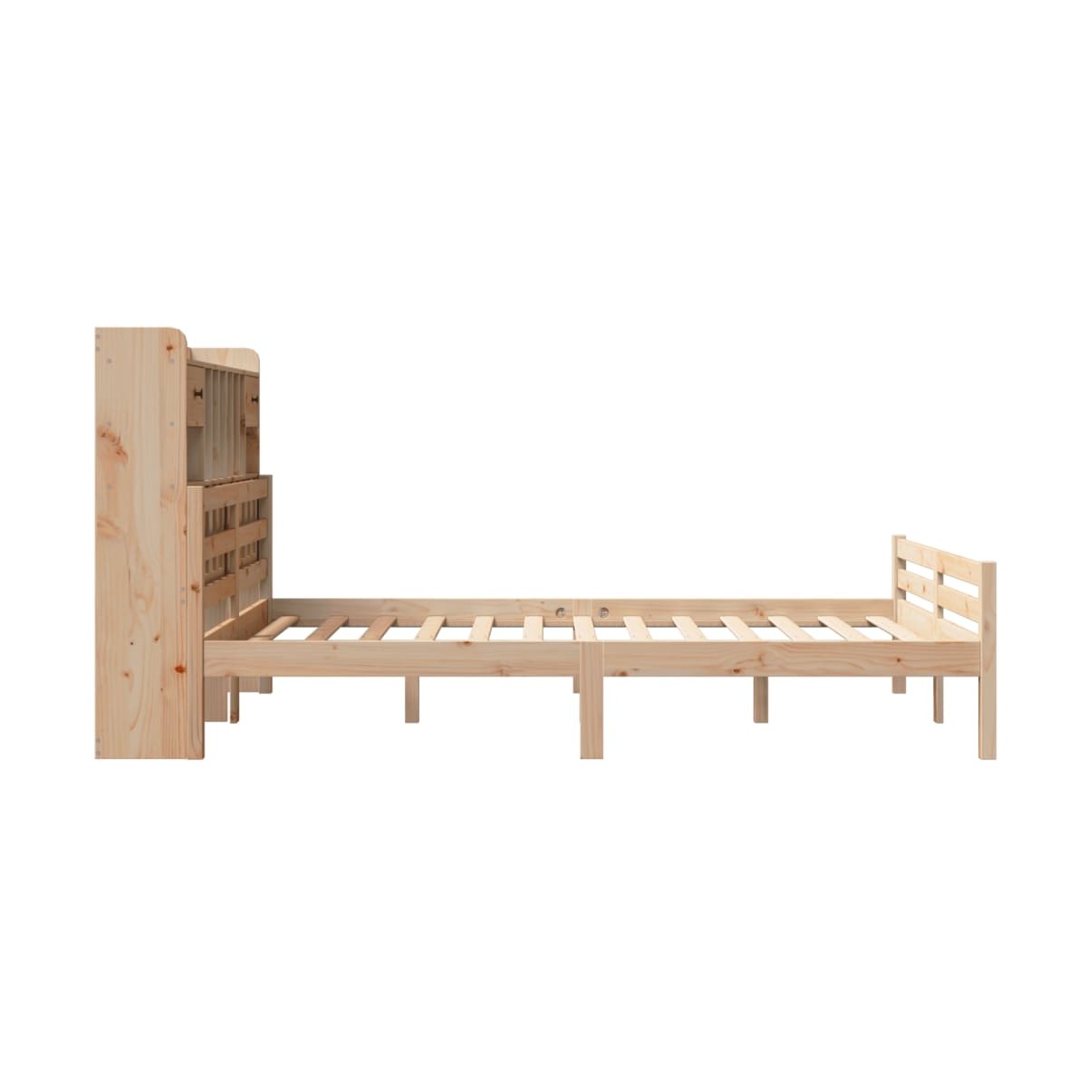 ¡Consigue una mejor noche de sueño reparador con esta cama con estantería! Es un aporte acogedor para cualquier dormitorio. Estructura estable y duradera: La madera de pino maciza es conocida por su resistencia y durabilidad. Sus vetas rectas y sus característicos nudos contribuyen a su encanto rústico. Somier de láminas para un soporte óptimo: La estructura de cama está equipada con un somier de láminas para el apoyo y la transpirabilidad del colchón. Amplio espacio de almacenamiento: El cabecero de estantería ofrece un amplio espacio de almacenamiento para mantener libros, artículos decorativos o pertenencias personales al alcance de la mano, lo que reduce el desorden en el dormitorio.Práctico pie de cama: El pie de cama no solo contribuye a la estabilidad general del marco de la cama, proporcionando un entorno seguro para dormir, sino que también asegura su colchón en su lugar y evita que las mantas, sábanas y otra ropa de cama se caigan del extremo de la cama, manteniendo una apariencia ordenada.Ahorro de espacio: Este cabecero es una opción de ahorro de espacio que puede sustituir la necesidad de una mesilla de noche, ayudando a maximizar el espacio de tu dormitorio, y haciéndolo ideal para espacios pequeños o limitados. Información útil:El colchón no está incluido con la cama. Disponemos de una variada selección de colchones. Puedes echar un vistazo a nuestra tienda para buscar el colchón correspondiente.
