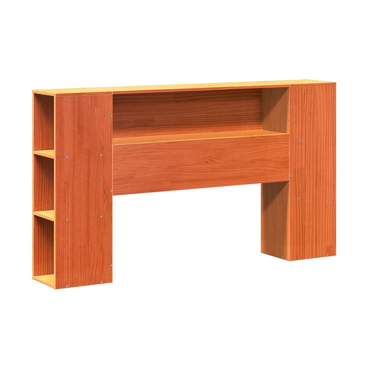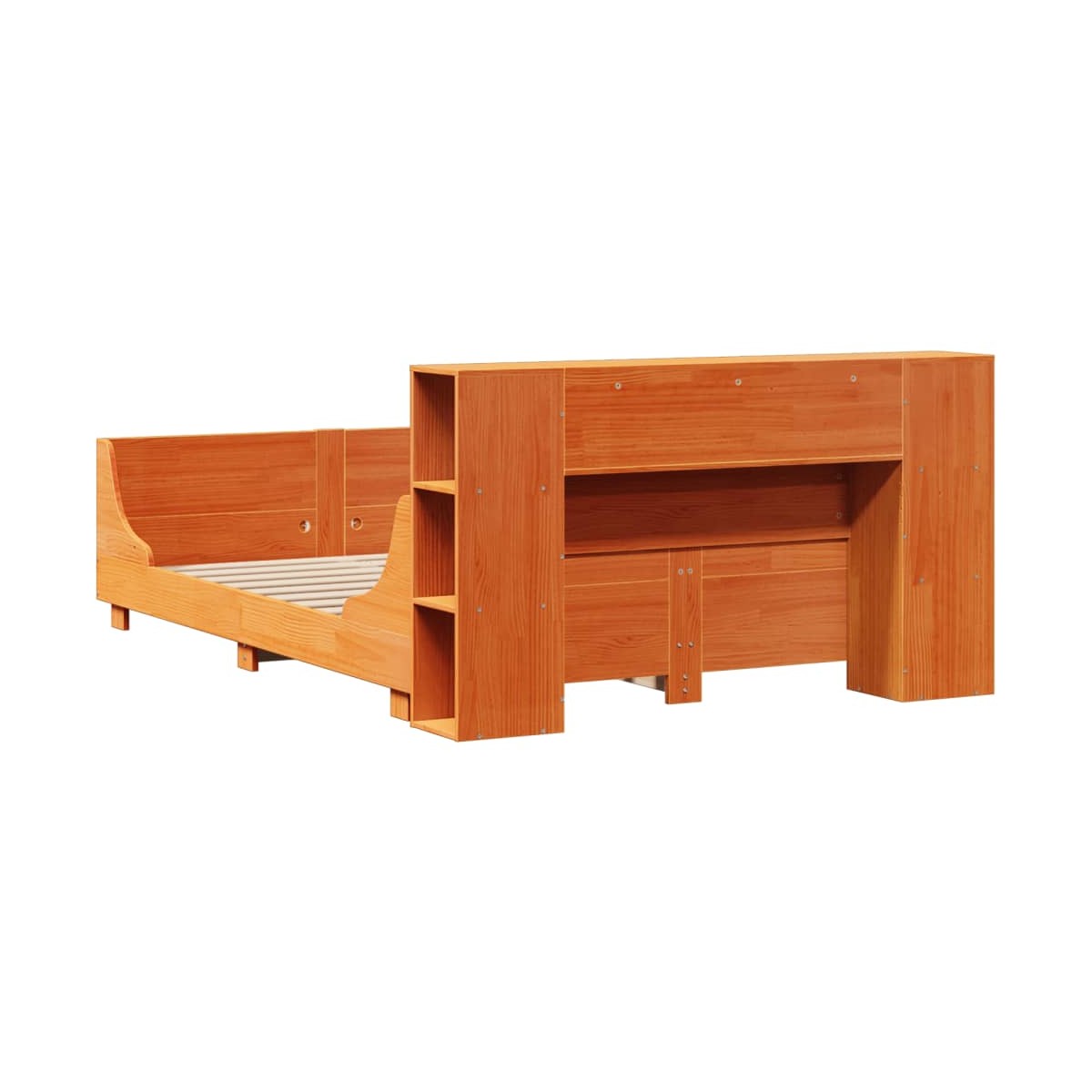 Consigue un sueño más reparador con esta estructura de cama. Es un aporte acogedor para cualquier dormitorio. Estructura estable y duradera: La madera de pino maciza es conocida por su resistencia y durabilidad. Sus vetas rectas y sus característicos nudos contribuyen a su encanto rústico.Aprovecha al máximo el espacio: Con 7 prácticos compartimentos, este cabecero es una opción que ahorra espacio y puede sustituir la necesidad de una mesita de noche, ayudando a maximizar el espacio de tu dormitorio y haciéndolo ideal para espacios pequeños o limitados.Cabecero y estribo de cama funcionales: El cabecero y el estribo de cama mantienen el colchón en su lugar. Además, la cabecera te brinda un excelente soporte para la espalda mientras estás sentado leyendo o mirando la televisión.Somier de láminas para un soporte óptimo: La estructura de cama está equipada con un somier de láminas para el apoyo y la transpirabilidad del colchón. Información útil:El colchón no está incluido con la cama. Disponemos de una variada selección de colchones. Puedes echar un vistazo a nuestra tienda para buscar el colchón correspondiente.