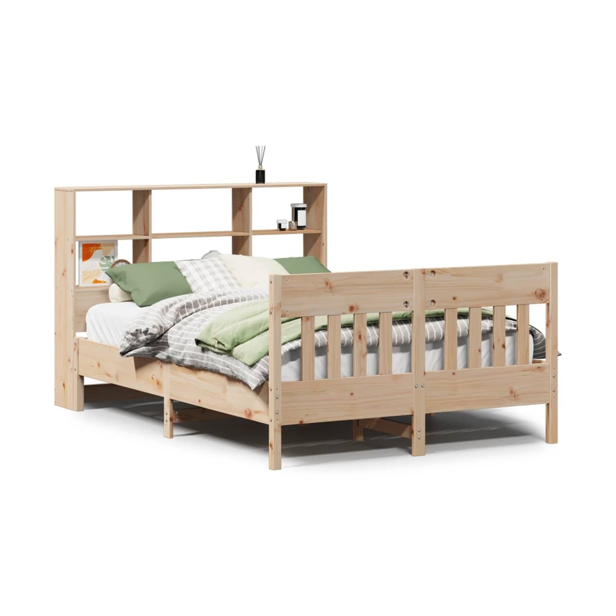 ¡Disfruta de una buena noche de sueño en esta estructura de cama de madera! Es un aporte práctico y decorativo para la casa. Madera de pino maciza: La madera de pino maciza es un bonito material natural. La madera de pino tiene vetas rectas, y los nudos dan al material su distintivo aspecto rústico.Listones robustos: Los listones de madera contrachapada proporcionan una buena distribución del peso, lo que garantiza que el colchón se mantenga en tu sitio con cada giro y vuelta del cuerpo mientras duermes.Excelente soporte: El cabecero de cama de madera te ofrece un excelente soporte para la espalda cuando te sientas en la cama para leer o mirar la televisión.Amplio espacio de almacenamiento: Este elegante cabecero cuenta con seis prácticos compartimentos, que ofrecen un amplio espacio de almacenamiento para mantener todos sus elementos esenciales de noche al alcance de la mano.Cabecero y estribo de cama funcionales: El cabecero y el estribo de cama mantienen el colchón en su lugar. Además, la cabecera te brinda un excelente soporte para la espalda mientras estás sentado leyendo o mirando la televisión. Información útil:El colchón no está incluido con la cama. Ofrecemos una variada selección de colchones. Puedes echar un vistazo a nuestra tienda para buscar el correspondiente colchón.