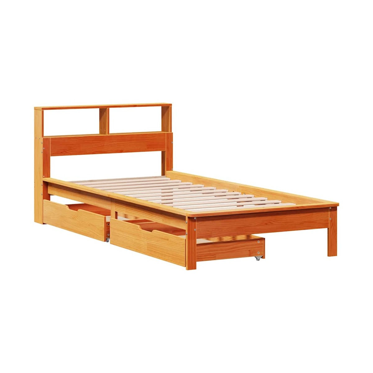 ¡Consigue una mejor noche de sueño reparador con esta cama con estantería! Es un aporte acogedor para cualquier dormitorio. Estructura estable y duradera: La madera de pino maciza es conocida por su resistencia y durabilidad. Sus vetas rectas y sus característicos nudos contribuyen a su encanto rústico.Somier de láminas para un soporte óptimo: El base de cama está equipado con un somier de láminas para el apoyo y la transpirabilidad del colchón.Maniobrabilidad sin esfuerzo: Este cajón de almacenamiento bajo la cama cuenta con cuatro ruedas, que proporcionan una maniobrabilidad suave y sin esfuerzo para deslizarse dentro y fuera de debajo de tu cama.Patas estables y duraderas: Este somier está sostenido por patas resistentes, lo que garantiza estabilidad, seguridad y firmeza.Ahorro de espacio: Este cabecero es una opción de ahorro de espacio que puede sustituir la necesidad de una mesilla de noche, ayudando a maximizar el espacio de tu dormitorio, y haciéndolo ideal para espacios pequeños o limitados. Información útil:El colchón no está incluido con la cama. Disponemos de una variada selección de colchones. Puedes echar un vistazo a nuestra tienda para buscar el colchón correspondiente.