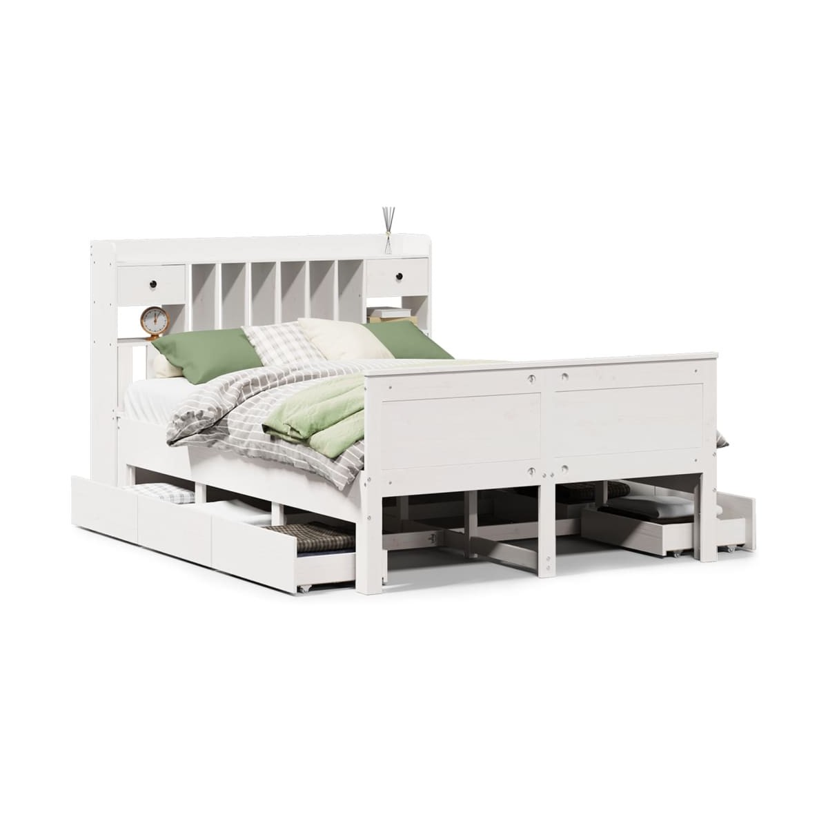 ¡Consigue una mejor noche de sueño reparador con esta cama con estantería! Es un aporte acogedor para cualquier dormitorio. Estructura estable y duradera: La madera de pino maciza es conocida por su resistencia y durabilidad. Sus vetas rectas y sus característicos nudos contribuyen a su encanto rústico.Somier de láminas para un soporte óptimo: La estructura de cama está equipada con un somier de láminas para el apoyo y la transpirabilidad del colchón.Amplio espacio de almacenamiento: El cabecero de estantería ofrece un amplio espacio de almacenamiento para mantener libros, artículos decorativos o pertenencias personales al alcance de la mano, lo que reduce el desorden en el dormitorio.Práctico pie de cama: El pie de cama no solo contribuye a la estabilidad general del marco de la cama, proporcionando un entorno seguro para dormir, sino que también asegura su colchón en su lugar y evita que las mantas, sábanas y otra ropa de cama se caigan del extremo de la cama, manteniendo una apariencia ordenada.Ahorro de espacio: Este cabecero es una opción de ahorro de espacio que puede sustituir la necesidad de una mesilla de noche, ayudando a maximizar el espacio de tu dormitorio, y haciéndolo ideal para espacios pequeños o limitados. Información útil:El colchón no está incluido con la cama. Disponemos de una variada selección de colchones. Puedes echar un vistazo a nuestra tienda para buscar el colchón correspondiente.