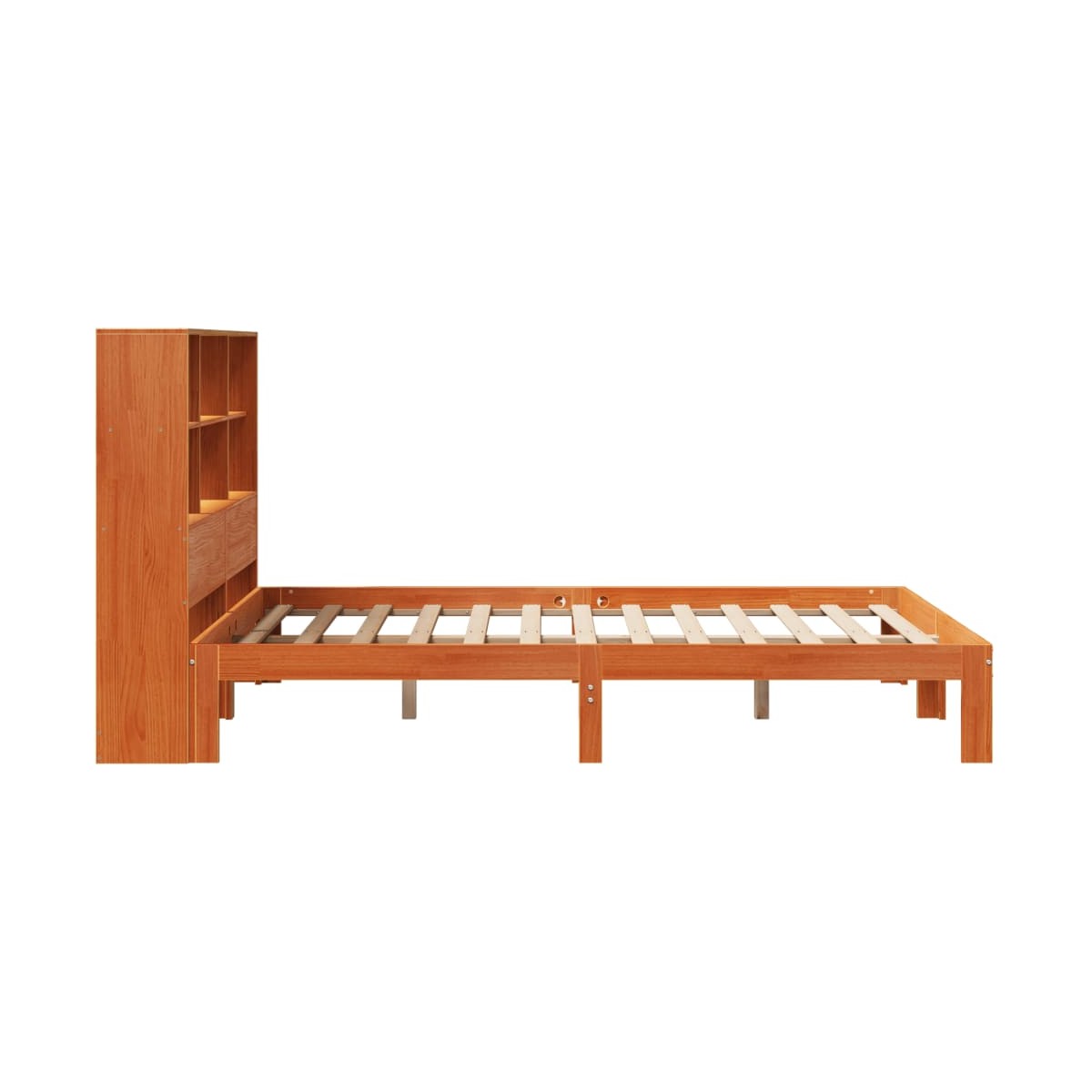 ¡Consigue una mejor noche de sueño reparador con esta cama con estantería! Es un aporte acogedor para cualquier dormitorio. Estructura estable y duradera: La madera de pino maciza es conocida por su resistencia y durabilidad. Sus vetas rectas y sus característicos nudos contribuyen a su encanto rústico.Somier de láminas para un soporte óptimo: La estructura de cama está equipada con un somier de láminas para el apoyo y la transpirabilidad del colchón.Amplio espacio de almacenamiento: El cabecero de estantería ofrece un amplio espacio de almacenamiento para mantener libros, artículos decorativos o pertenencias personales al alcance de la mano, lo que reduce el desorden en el dormitorio.Ahorro de espacio: Este cabecero es una opción de ahorro de espacio que puede sustituir la necesidad de una mesilla de noche, ayudando a maximizar el espacio de tu dormitorio, y haciéndolo ideal para espacios pequeños o limitados. Información útil:El colchón no está incluido con la cama. Disponemos de una variada selección de colchones. Puedes echar un vistazo a nuestra tienda para buscar el colchón correspondiente.