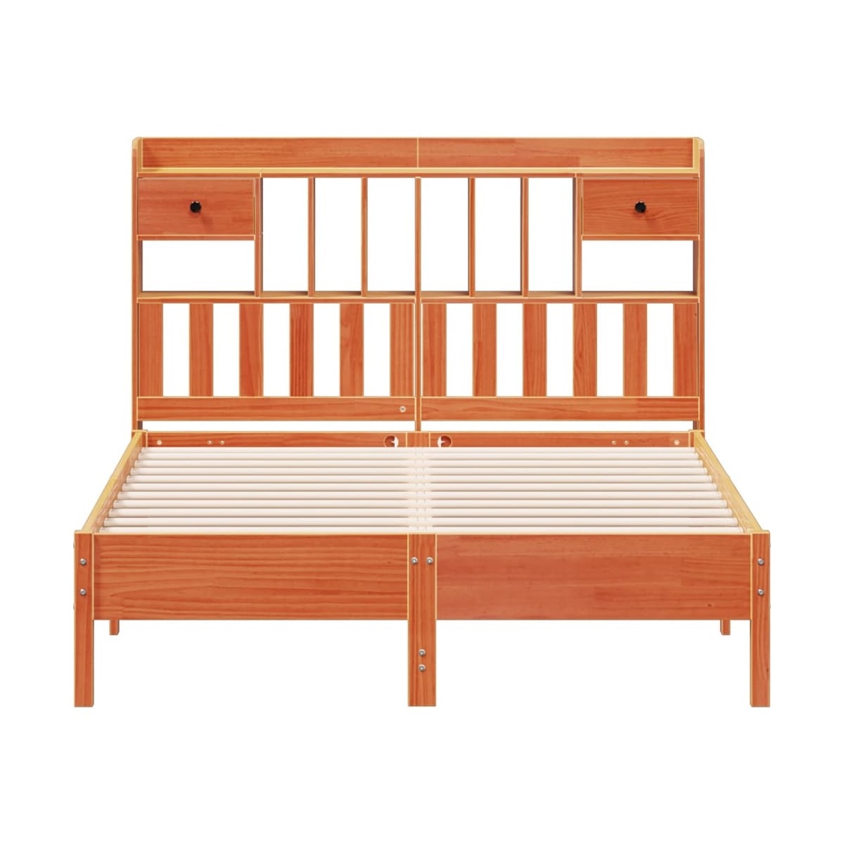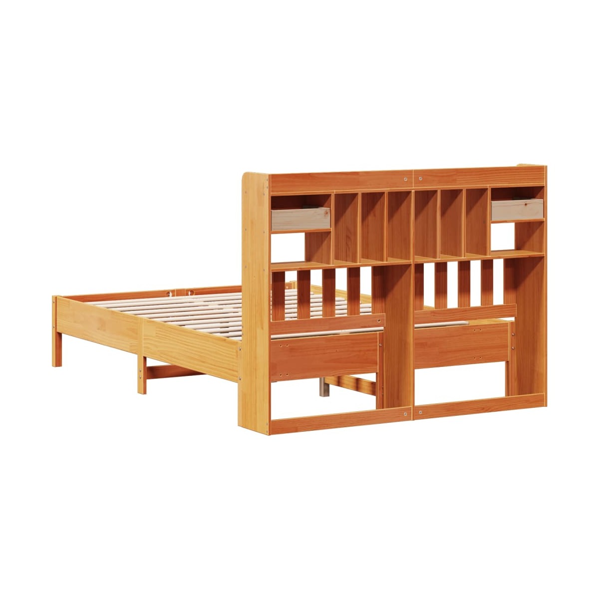 ¡Consigue una mejor noche de sueño reparador con esta cama con estantería! Es un aporte acogedor para cualquier dormitorio. Estructura estable y duradera: La madera de pino maciza es conocida por su resistencia y durabilidad. Sus vetas rectas y sus característicos nudos contribuyen a su encanto rústico.Somier de láminas para un soporte óptimo: La estructura de cama está equipada con un somier de láminas para el apoyo y la transpirabilidad del colchón.Amplio espacio de almacenamiento: El cabecero de estantería ofrece un amplio espacio de almacenamiento para mantener libros, artículos decorativos o pertenencias personales al alcance de la mano, lo que reduce el desorden en el dormitorio.Ahorro de espacio: Este cabecero es una opción de ahorro de espacio que puede sustituir la necesidad de una mesilla de noche, ayudando a maximizar el espacio de tu dormitorio, y haciéndolo ideal para espacios pequeños o limitados. Información útil:El colchón no está incluido con la cama. Disponemos de una variada selección de colchones. Puedes echar un vistazo a nuestra tienda para buscar el colchón correspondiente.