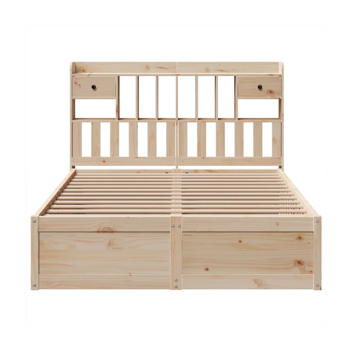 ¡Disfruta de una buena noche de sueño en esta estructura de cama de madera! Es un aporte práctico y decorativo para la casa. Madera de pino maciza: La madera de pino maciza es un bonito material natural. La madera de pino tiene vetas rectas, y los nudos dan al material su distintivo aspecto rústico.Estructura de cama resistente: La estructura de madera garantiza su solidez y estabilidad. Los listones de madera contrachapada proporcionan una buena distribución del peso, lo que garantiza que el colchón se mantenga en su sitio con cada giro y vuelta del cuerpo mientras duermes.Cabecero funcional: El cabecero de la cama de madera puede mantener el colchón en su sitio. Además, el cabecero te brinda un excelente soporte para la espalda mientras estás sentado leyendo o mirando la televisión.Amplio espacio de almacenamiento: Este elegante cabecero cuenta con 3 prácticos compartimentos y 2 cajones, lo que ofrece un amplio espacio de almacenamiento para mantener todos los elementos esenciales de la noche al alcance de la mano. Información útil:El colchón no está incluido con la cama. Disponemos de una variada selección de colchones. Puedes echar un vistazo a nuestra tienda para buscar el colchón correspondiente.