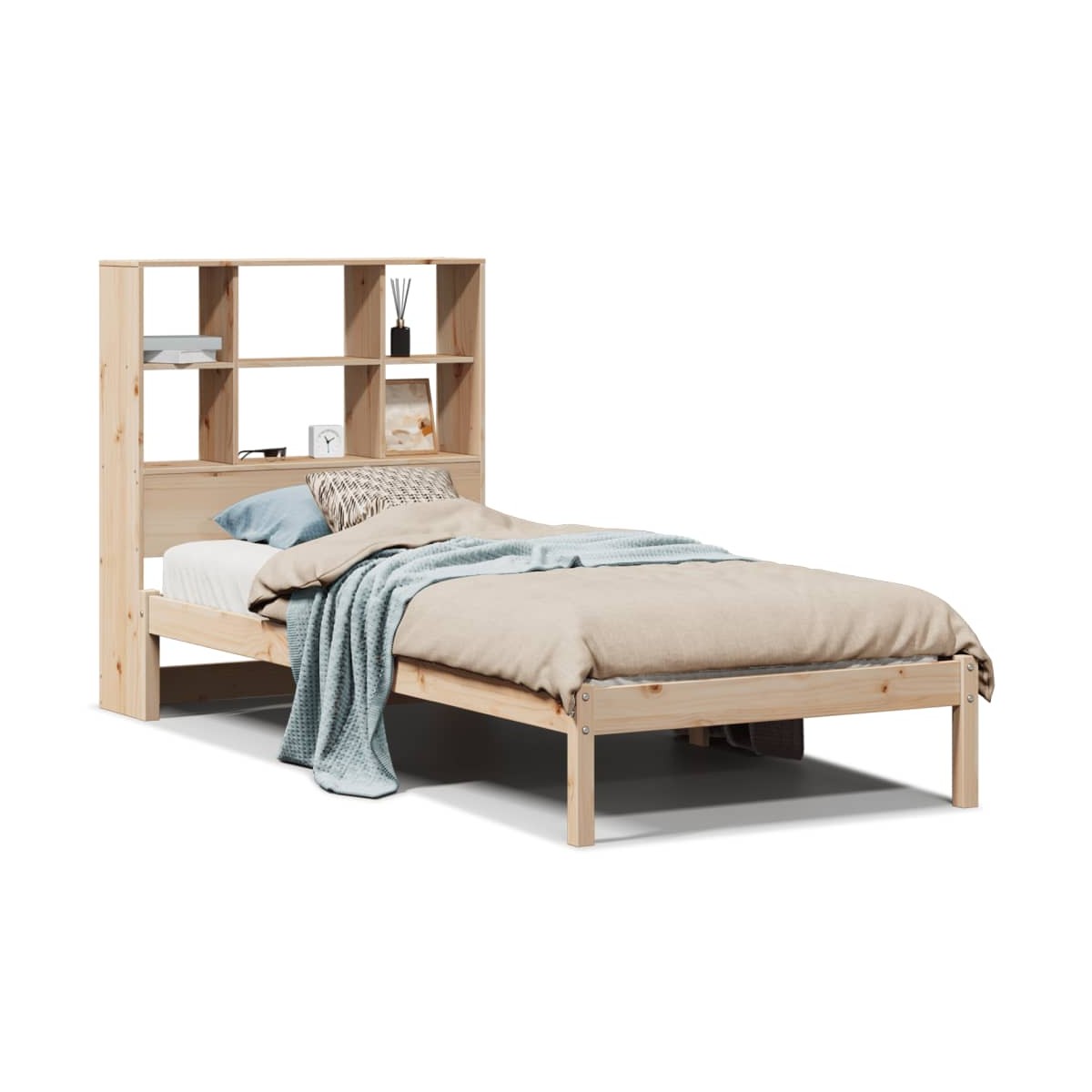 ¡Consigue una mejor noche de sueño reparador con esta cama con estantería! Es un aporte acogedor para cualquier dormitorio. Estructura estable y duradera: La madera de pino maciza es conocida por su resistencia y durabilidad. Sus vetas rectas y sus característicos nudos contribuyen a su encanto rústico.Somier de láminas para un soporte óptimo: La estructura de cama está equipada con un somier de láminas para el apoyo y la transpirabilidad del colchón.Amplio espacio de almacenamiento: El cabecero de estantería ofrece un amplio espacio de almacenamiento para mantener libros, artículos decorativos o pertenencias personales al alcance de la mano, lo que reduce el desorden en el dormitorio.Ahorro de espacio: Este cabecero es una opción de ahorro de espacio que puede sustituir la necesidad de una mesilla de noche, ayudando a maximizar el espacio de tu dormitorio, y haciéndolo ideal para espacios pequeños o limitados. Información útil:El colchón no está incluido con la cama. Disponemos de una variada selección de colchones. Puedes echar un vistazo a nuestra tienda para buscar el colchón correspondiente.