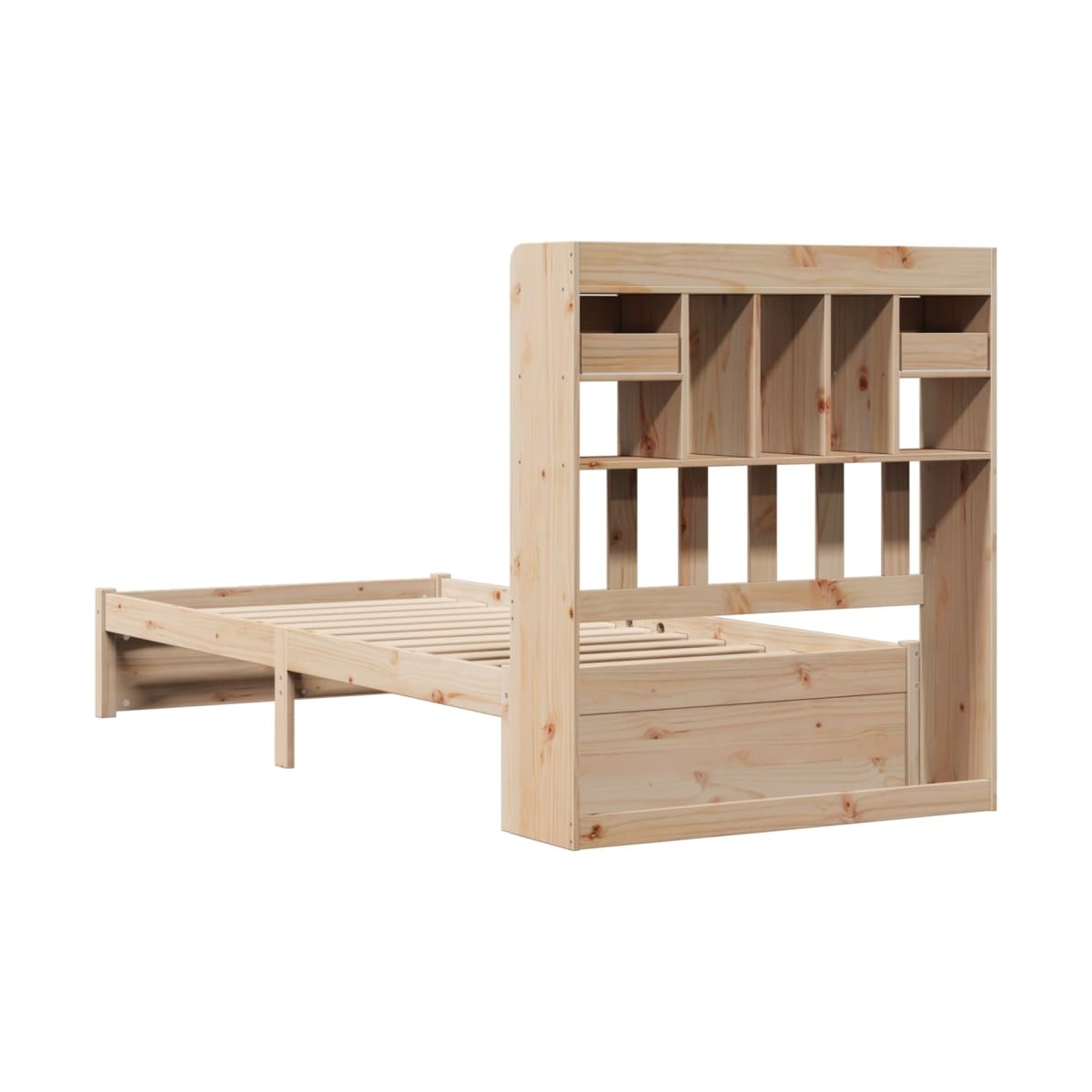 ¡Consigue una mejor noche de sueño reparador con esta cama con estantería! Es un aporte acogedor para cualquier dormitorio. Estructura estable y duradera: La madera de pino maciza es conocida por su resistencia y durabilidad. Sus vetas rectas y sus característicos nudos contribuyen a su encanto rústico.Somier de láminas para un soporte óptimo: La estructura de cama está equipada con un somier de láminas para el apoyo y la transpirabilidad del colchón.Amplio espacio de almacenamiento: El cabecero de estantería ofrece un amplio espacio de almacenamiento para mantener libros, artículos decorativos o pertenencias personales al alcance de la mano, lo que reduce el desorden en el dormitorio.Ahorro de espacio: Este cabecero es una opción de ahorro de espacio que puede sustituir la necesidad de una mesilla de noche, ayudando a maximizar el espacio de tu dormitorio, y haciéndolo ideal para espacios pequeños o limitados. Información útil:El colchón no está incluido con la cama. Disponemos de una variada selección de colchones. Puedes echar un vistazo a nuestra tienda para buscar el colchón correspondiente.