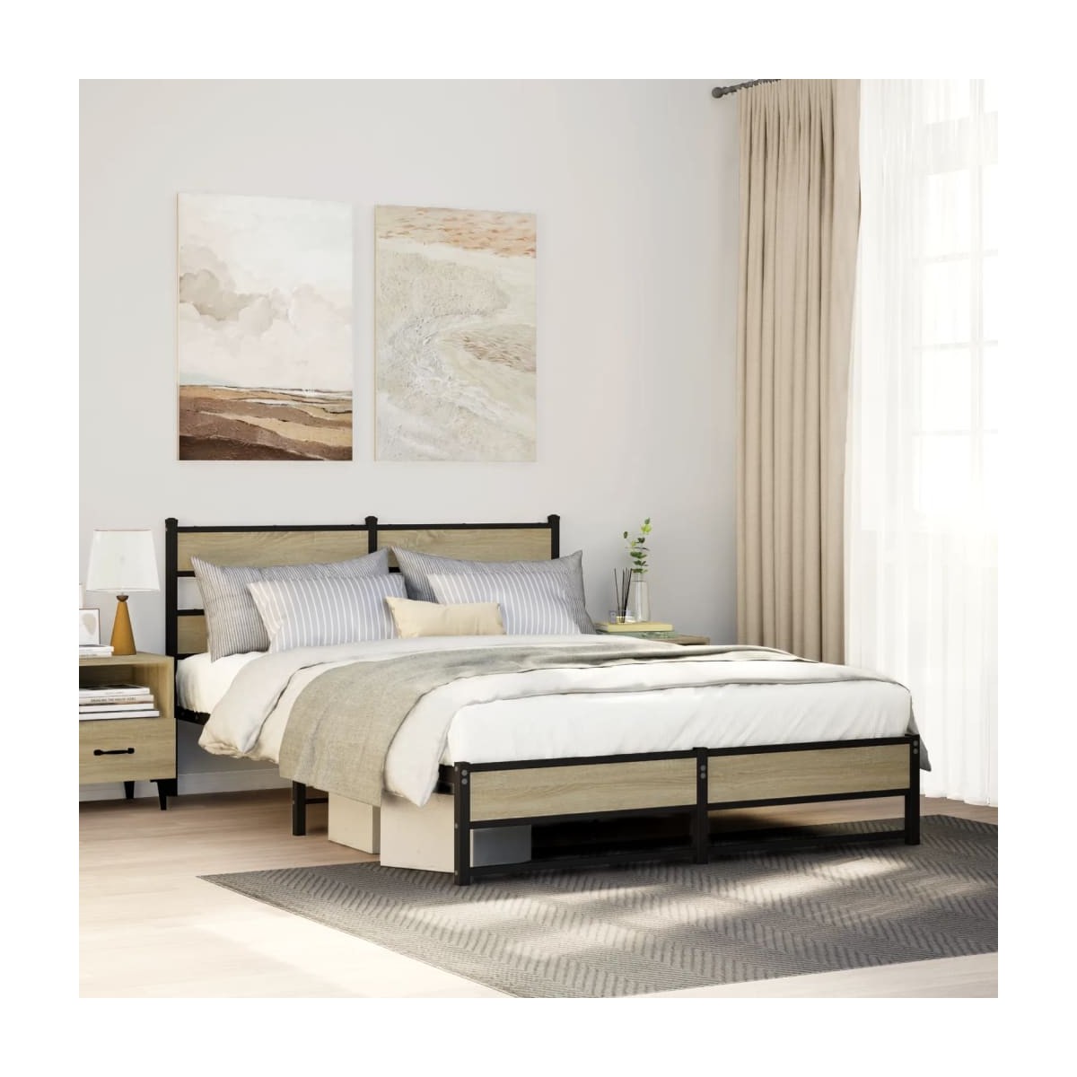 Si estás buscando una estructura de cama robusta para el dormitorio, ¡esta clásica estructura de cama con un diseño elegante y atemporal es la elección perfecta para ti! Construcción robusta de metal: La estructura de la cama está hecha de acero. El acero es un material muy duro y fuerte, que ofrece una solidez y estabilidad excepcionales.Listones y patas de metal: La estructura metálica de la cama se completa con patas centrales y listones de metal con el fin de ofrecer al colchón el soporte y la transpirabilidad que tanto necesita.Espacio de almacenamiento adicional: Para mayor comodidad, la cama de invitados también dispone de un espacio debajo para guardar las cajas de almacenaje y que no se vean.Excelente apoyo: El cabecero de la cama te ofrece un excelente soporte para la espalda mientras estás sentado en la cama leyendo o mirando televisión. Información útil:El colchón no está incluido con la cama. Disponemos de una variada selección de colchones. Puedes echar un vistazo a nuestra tienda para buscar el colchón correspondiente.