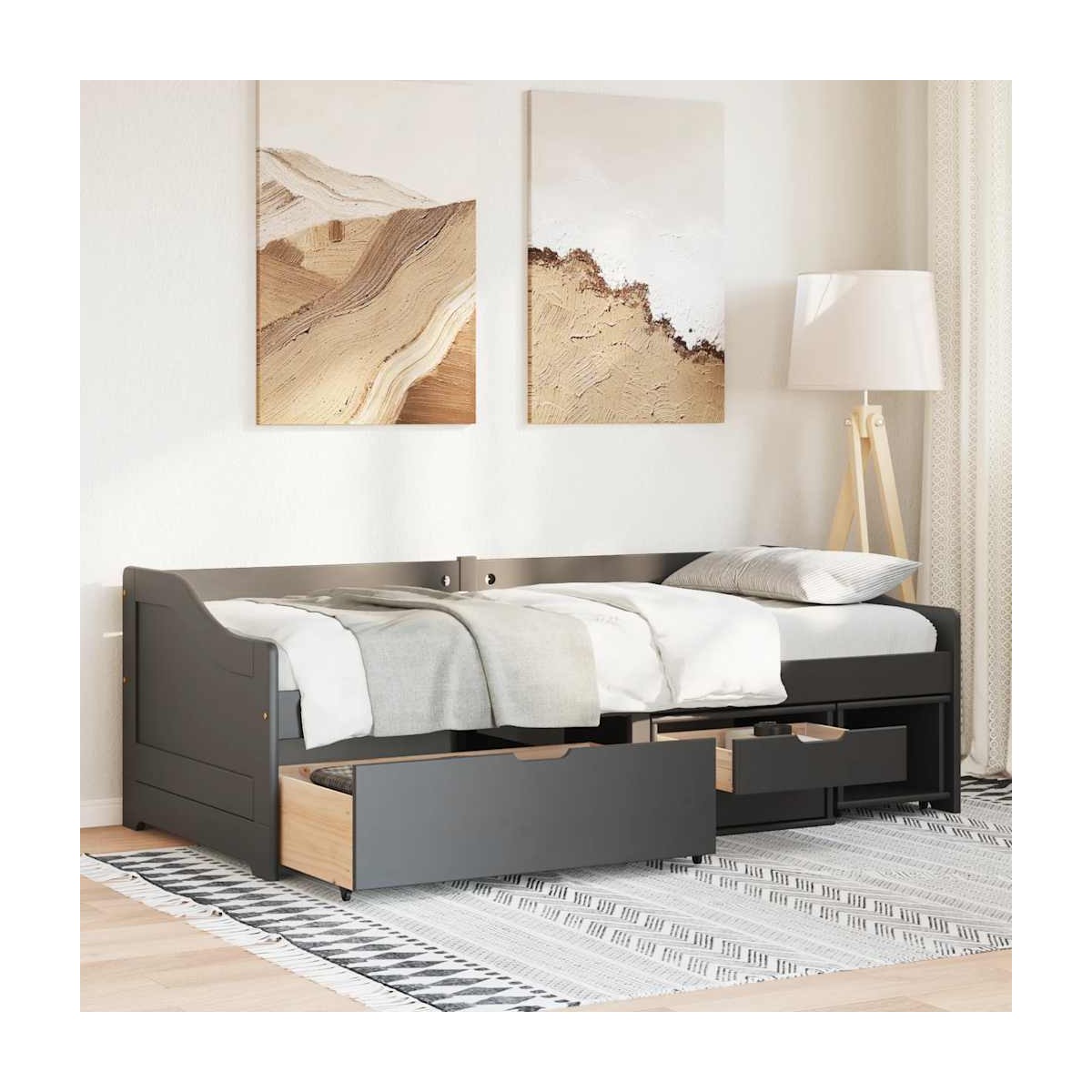 Este versátil sofá cama de madera se puede usar como cama en el dormitorio y también encaja a la perfección como sofá en el salón. Se adapta perfectamente a tus diferentes necesidades, lo que te proporciona mucho espacio para dormir y descansar. Madera maciza de pino: La madera maciza de pino es un bonito material natural. La madera de pino tiene vetas rectas, y los nudos dan al material su distintivo aspecto rústico. Esta cama para invitados está hecha de madera maciza de pino, más estable y duradera.Diseño de listones: El somier de madera proporciona una mejor circulación del aire para mantener el colchón fresco durante más tiempo, además de mejorar la capacidad de carga de la cama y de asegurar su estabilidad.Sofá cama multiusos: Este sofá cama de madera se puede utilizar como sofá durante el día o como cama por la noche. Es una solución rápida para alojar invitados por la noche sin ocupar mucho espacio.Espacio de almacenamiento adicional: Aprovecha al máximo el espacio que hay debajo de la cama para guardar varios objetos. Perfecto para guardar tu ropa, zapatos, juguetes o edredones. Información útil:El colchón no está incluido con la cama. Ofrecemos una variada selección de colchones. Puedes echar un vistazo a nuestra tienda para buscar el colchón correspondiente.