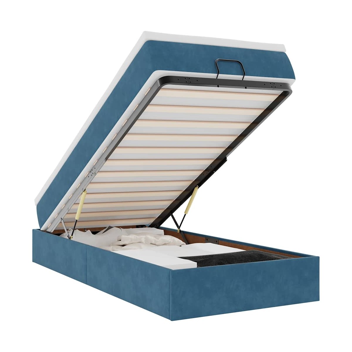 ¡Utilice esta estructura de cama otomana con colchón para disfrutar de una noche de sueño reparador! Le ofrece una solución de almacenamiento y una experiencia de sueño cómoda. Material suave y cómodo: La tela de terciopelo ofrece una superficie suave y lisa que proporciona una agradable sensación contra el tacto, aportándole calidez y el máximo confort.Colchón de muelles ensacados: Este colchón de muelles ensacados cuenta con muelles ensacados individuales que funcionan de forma independiente para proporcionar un apoyo personalizado reaccionando únicamente a la presión de cada zona. Este diseño evita que se enrolle y reduce la transferencia de movimiento en comparación con los colchones tradicionales de bobina abierta. Cada muelle ensacado sostiene el cuerpo individualmente.amplio espacio de almacenamiento debajo de la cama: gracias al mecanismo de elevación hidráulico, el marco de la cama ofrece un amplio espacio de almacenamiento debajo de la cama, maximizando el espacio sin ocupar área adicional en el piso.Cubrecolchón cómodo: Este cubrecolchón mejora el soporte y la comodidad con su superficie suave y transpirable al tiempo que prolonga la vida útil de su colchón. Su funda extraíble permite un fácil lavado, lo que facilita el mantenimiento. Información útil:Por razones de higiene, el colchón no puede devolverse si se ha quitado o abierto el embalaje.