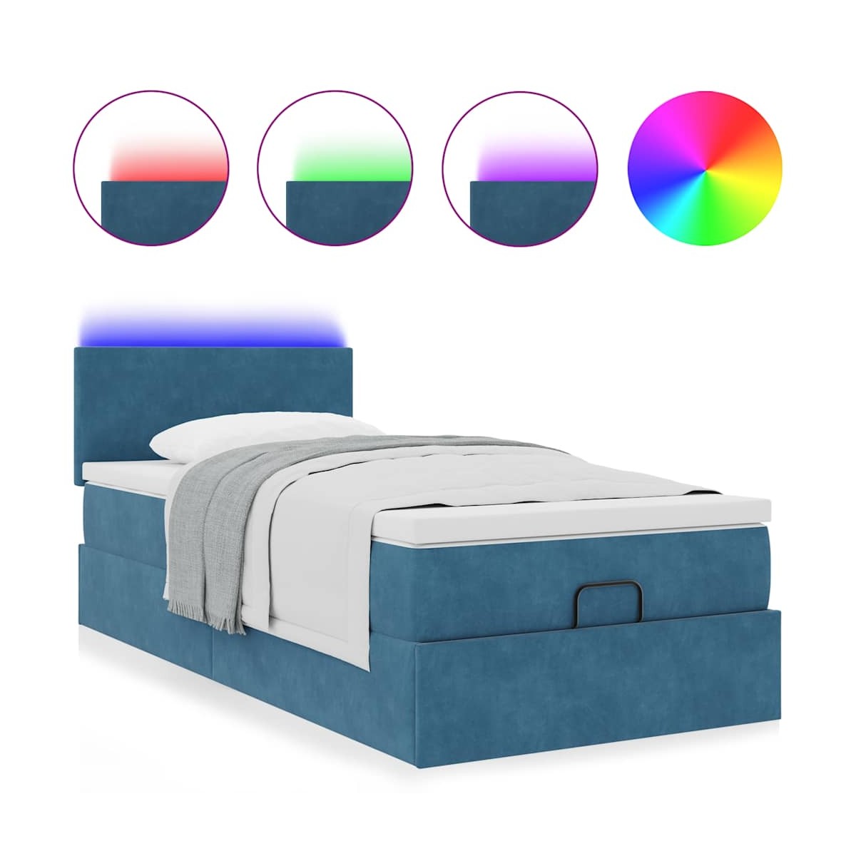 ¡Utilice esta cama otomana con colchón para disfrutar de una noche de sueño reparador! Le ofrece una solución de almacenamiento y una experiencia de sueño cómoda. Material suave y cómodo: La tela de terciopelo ofrece una superficie suave y lisa que proporciona una agradable sensación contra el tacto, aportándole calidez y el máximo confort.Colchón de muelles ensacados: Este colchón de muelles ensacados cuenta con muelles ensacados individuales que funcionan de forma independiente para proporcionar un apoyo personalizado reaccionando únicamente a la presión de cada zona. Este diseño evita que se enrolle y reduce la transferencia de movimiento en comparación con los colchones tradicionales de bobina abierta. Cada muelle ensacado sostiene el cuerpo individualmente.amplio espacio de almacenamiento debajo de la cama: gracias al mecanismo de elevación hidráulico, el marco de la cama ofrece un amplio espacio de almacenamiento debajo de la cama, maximizando el espacio sin ocupar área adicional en el piso.Cubrecolchón cómodo: Este cubrecolchón mejora el soporte y la comodidad con su superficie suave y transpirable al tiempo que prolonga la vida útil de su colchón. Su funda extraíble permite un fácil lavado, lo que facilita el mantenimiento.Luces LED para un ambiente agradable: Esta cama cuenta con luces LED que se pueden ajustar fácilmente para crear un espectáculo de luces personalizado. Puedes personalizar los modos, los colores y el brillo para mejorar el ambiente de tu espacio interior. Información útil:El producto tiene un conector USB que necesita una fuente de alimentación USB certificada de 5 V (no incluida).Por razones de higiene, el colchón no puede devolverse si se ha quitado o abierto el embalaje.Únicamente puedes cortar por la parte con el símbolo de las tijeras y únicamente la parte con el USB seguirá funcionando como antes.