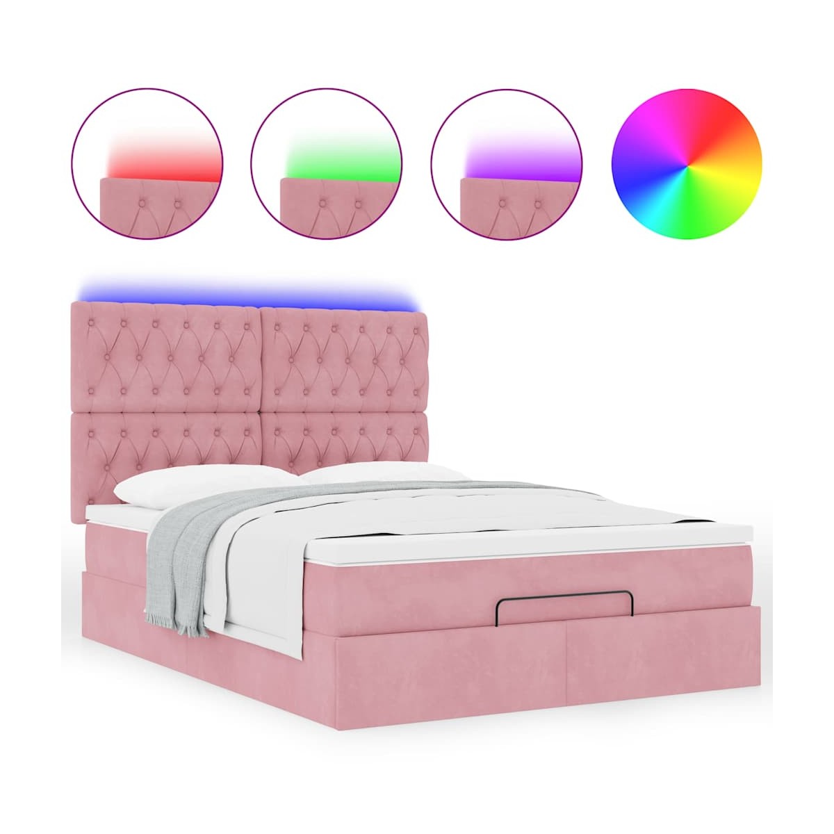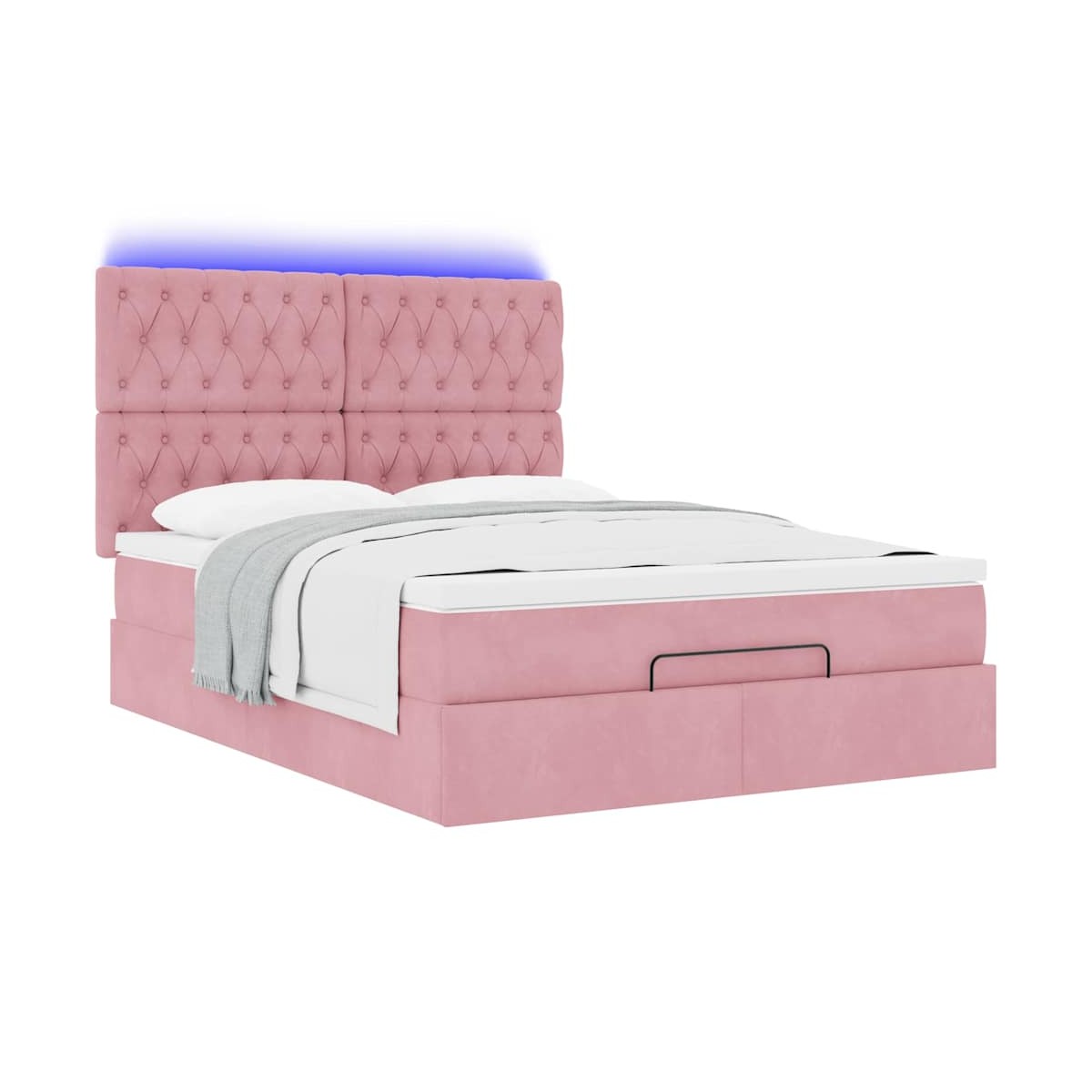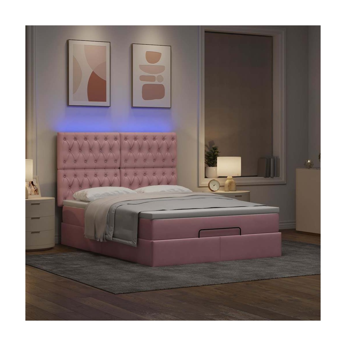 ¡Utilice esta estructura de cama otomana con colchones para disfrutar de una noche de sueño reparador! Le ofrece una solución de almacenamiento y una experiencia de sueño cómoda.Material suave y cómodo: La tela de terciopelo ofrece una superficie suave y lisa que proporciona una agradable sensación contra el tacto, aportándole calidez y el máximo confort.Colchón de muelles ensacados: Este colchón de muelles ensacados cuenta con muelles ensacados individuales que funcionan de forma independiente para proporcionar un apoyo personalizado reaccionando únicamente a la presión de cada zona. Este diseño evita que se enrolle y reduce la transferencia de movimiento en comparación con los colchones tradicionales de bobina abierta. Cada muelle ensacado sostiene el cuerpo individualmente.amplio espacio de almacenamiento debajo de la cama: gracias al mecanismo de elevación hidráulico, el marco de la cama ofrece un amplio espacio de almacenamiento debajo de la cama, maximizando el espacio sin ocupar área adicional en el piso.Cubrecolchón cómodo: Este cubrecolchón mejora el soporte y la comodidad con su superficie suave y transpirable al tiempo que prolonga la vida útil de su colchón. Su funda extraíble permite un fácil lavado, lo que facilita el mantenimiento.Luces LED para un ambiente agradable: Esta cama cuenta con luces LED que se pueden ajustar fácilmente para crear un espectáculo de luces personalizado. Puedes personalizar los modos, los colores y el brillo para mejorar el ambiente de tu espacio interior. Información útil:El producto tiene un conector USB que necesita una fuente de alimentación USB certificada de 5 V (no incluida).Por razones de higiene, el colchón no puede devolverse si se ha quitado o abierto el embalaje.Únicamente puedes cortar por la parte con el símbolo de las tijeras y únicamente la parte con el USB seguirá funcionando como antes.