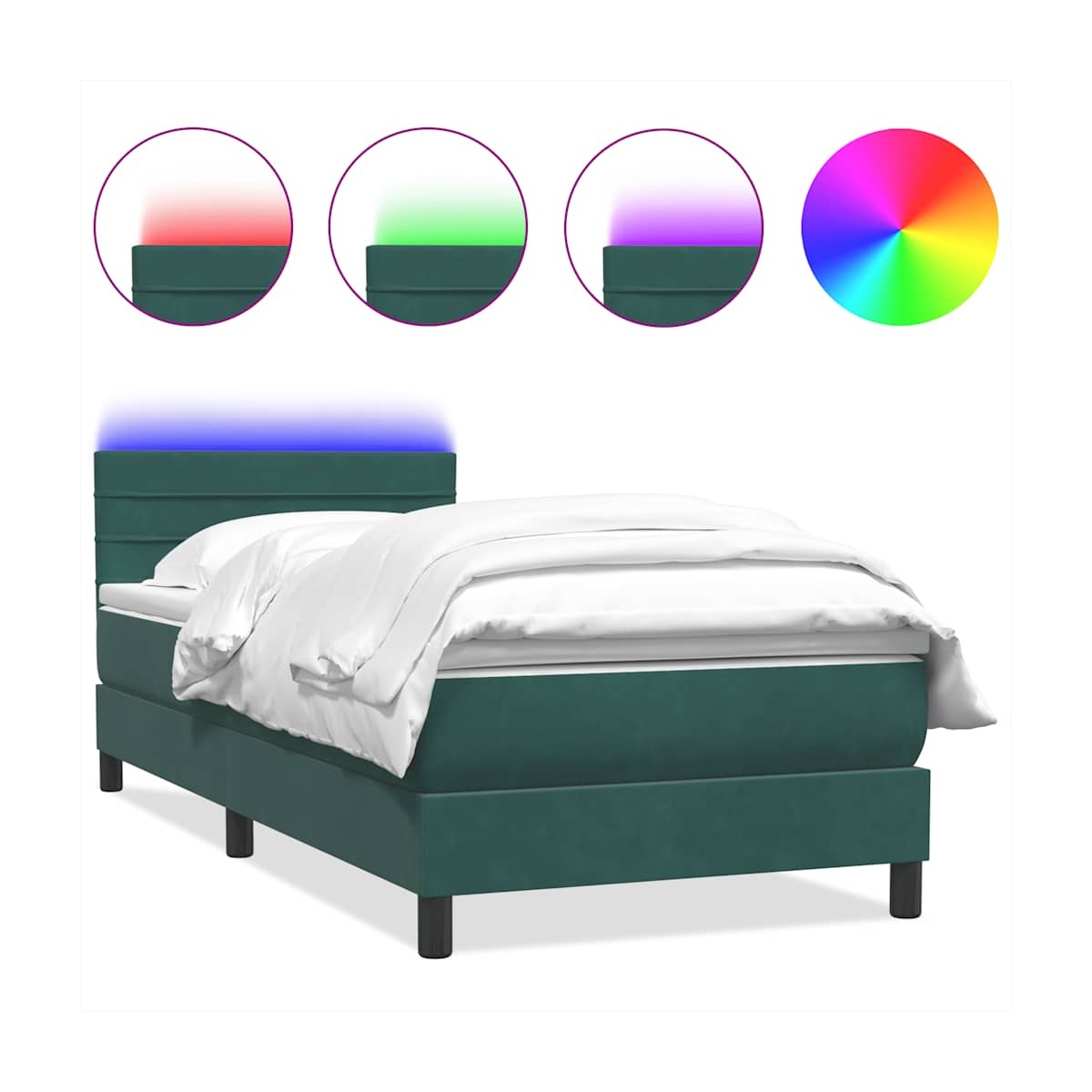 Utiliza esta cama de muelles para disfrutar de un sueño reparador. Te ofrece la máxima relajación y un sueño placentero. Material suave y cómodo: La tela de terciopelo ofrece una superficie suave y lisa que proporciona una agradable sensación contra el tacto, aportándole calidez y el máximo confort.Colchón de muelles ensacados: Este colchón de muelles ensacados cuenta con muelles ensacados individuales que funcionan de forma independiente para proporcionar un apoyo personalizado reaccionando únicamente a la presión de cada zona. Este diseño evita que se enrolle y reduce la transferencia de movimiento en comparación con los colchones tradicionales de bobina abierta. Cada muelle ensacado sostiene el cuerpo individualmente.Cubrecolchón cómodo: Este cubrecolchón mejora el soporte y la comodidad con su superficie suave y transpirable al tiempo que prolonga la vida útil de su colchón. Su funda extraíble permite un fácil lavado, lo que facilita el mantenimiento.Cabecero práctico: El cabecero de la cama es ajustable en altura según tus preferencias. El cabecero de la cama te proporciona un excelente apoyo para la espalda mientras estás sentado en la cama para leer o ver la televisión.Luces LED para un ambiente agradable: Esta cama cuenta con luces LED que se pueden ajustar fácilmente para crear un espectáculo de luces personalizado. Puedes personalizar los modos, los colores y el brillo para mejorar el ambiente de tu espacio interior. Información útil:El producto tiene un conector USB que necesita una fuente de alimentación USB certificada de 5 V (no incluida).Por razones de higiene, el colchón no puede devolverse si se ha quitado o abierto el embalaje.Únicamente puedes cortar por la parte con el símbolo de las tijeras y únicamente la parte con el USB seguirá funcionando como antes.