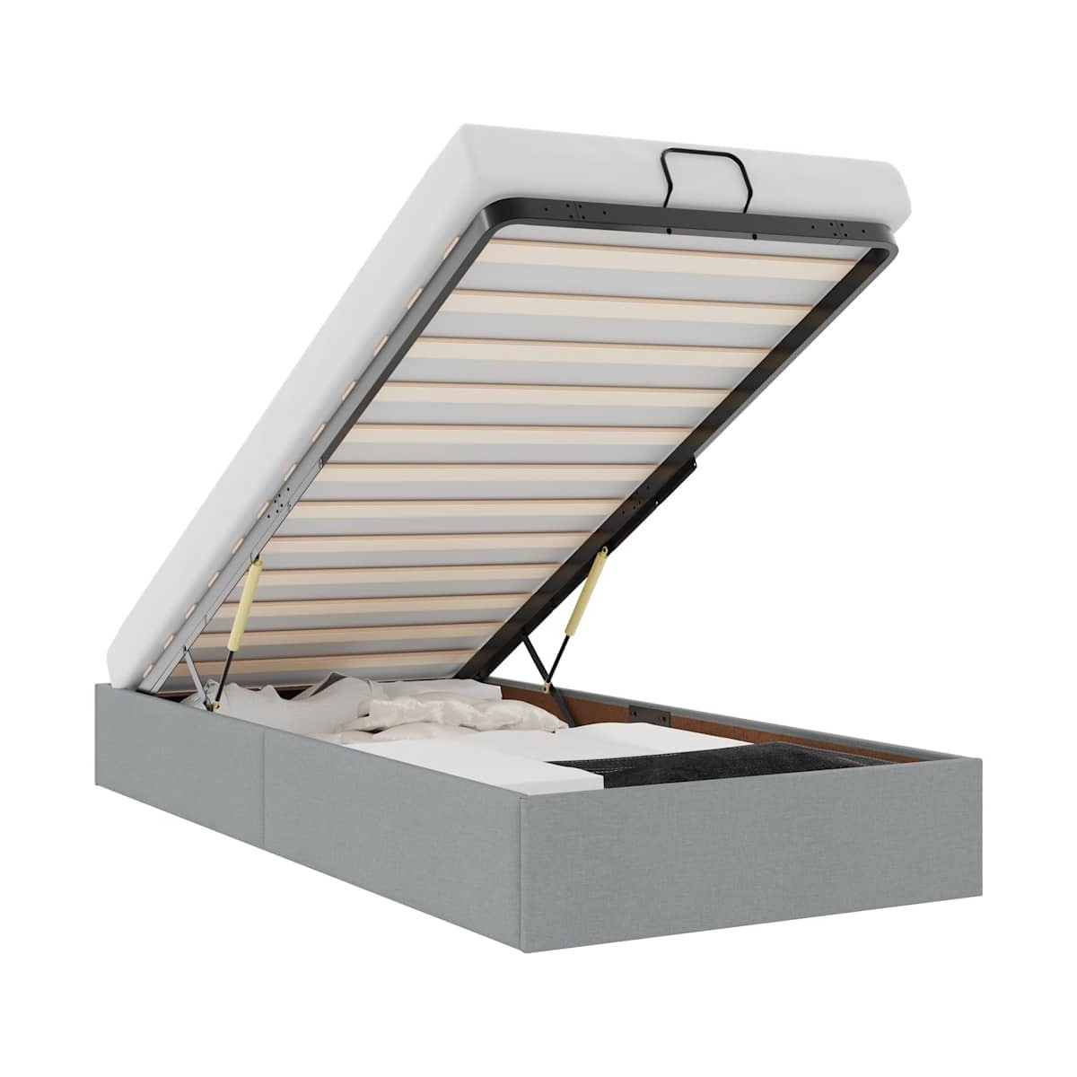 Este marco de cama otomana combina a la perfección la estética moderna con la funcionalidad práctica, ofreciéndole tanto una solución de almacenamiento como una experiencia de sueño cómoda. Material suave y duradero: La tela de poliéster ofrece una combinación de suavidad, transpirabilidad y durabilidad, lo que garantiza que experimentes la máxima comodidad.Amplio espacio de almacenamiento debajo de la cama: este marco de cama cuenta con un amplio espacio de almacenamiento debajo, lo que maximiza el espacio sin requerir espacio adicional en el piso. Proporciona un amplio espacio para guardar artículos como edredones adicionales, almohadas y ropa de temporada, lo que lo hace ideal para espacios más pequeños o más reducidos.Cómodo mecanismo de elevación: el mecanismo de elevación hidráulico integrado proporciona un fácil acceso a sus pertenencias guardadas debajo de la cama. Con solo tirar de la manija, la base de láminas se levanta suavemente, lo que le permite recuperar sus artículos de manera rápida y sin esfuerzo.No requiere somier: el marco de la cama incluye una base de láminas que proporciona un excelente soporte y transpirabilidad para su colchón, eliminando la necesidad de un somier. Información útil:El colchón no está incluido con la cama. Ofrecemos una variada selección de colchones. Puedes echar un vistazo a nuestra tienda para buscar el colchón correspondiente.