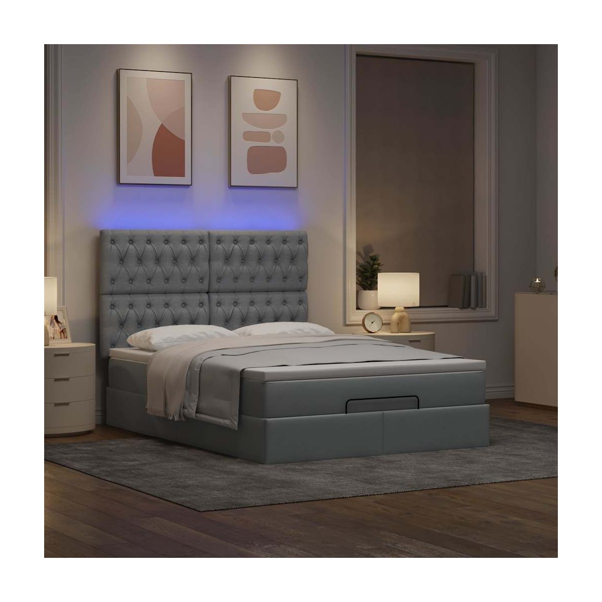 ¡Utilice esta estructura de cama otomana con colchón para disfrutar de una noche de sueño reparador! Le ofrece una solución de almacenamiento y una experiencia de sueño cómoda. Material suave y duradero: La tela de poliéster ofrece una combinación de suavidad, transpirabilidad y durabilidad, lo que garantiza que experimentes la máxima comodidad.Colchón de muelles ensacados: Este colchón de muelles ensacados cuenta con muelles ensacados individuales que funcionan de forma independiente para proporcionar un apoyo personalizado reaccionando únicamente a la presión de cada zona. Este diseño evita que se enrolle y reduce la transferencia de movimiento en comparación con los colchones tradicionales de bobina abierta. Cada muelle ensacado sostiene el cuerpo individualmente.amplio espacio de almacenamiento debajo de la cama: gracias al mecanismo de elevación hidráulico, el marco de la cama ofrece un amplio espacio de almacenamiento debajo de la cama, maximizando el espacio sin ocupar área adicional en el piso.Cubrecolchón cómodo: Este cubrecolchón mejora el soporte y la comodidad con su superficie suave y transpirable al tiempo que prolonga la vida útil de su colchón. Su funda extraíble permite un fácil lavado, lo que facilita el mantenimiento.Luces LED para un ambiente agradable: Esta cama cuenta con luces LED que se pueden ajustar fácilmente para crear un espectáculo de luces personalizado. Puedes personalizar los modos, los colores y el brillo para mejorar el ambiente de tu espacio interior. Información útil:El producto tiene un conector USB que necesita una fuente de alimentación USB certificada de 5 V (no incluida).Por razones de higiene, el colchón no puede devolverse si se ha quitado o abierto el embalaje.Únicamente puedes cortar por la parte con el símbolo de las tijeras y únicamente la parte con el USB seguirá funcionando como antes.
